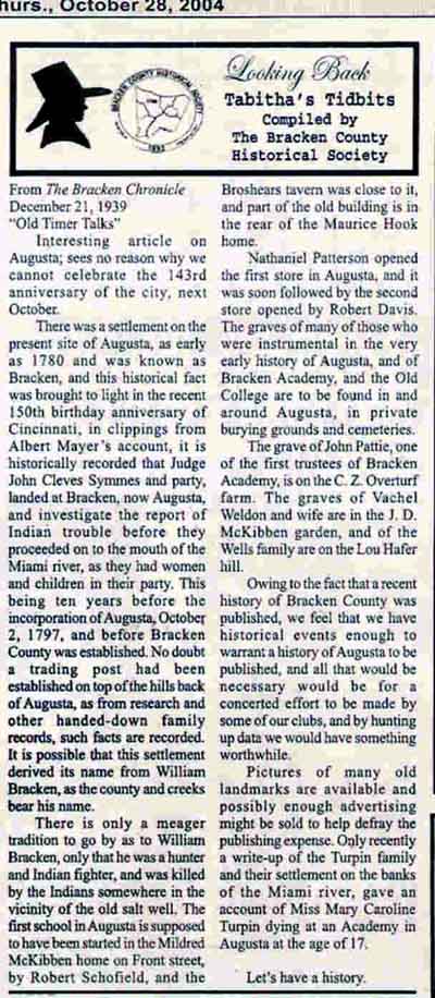| October 28, 2004 | From The Bracken Chronicle December 21, 1939 Old Timer Talks |