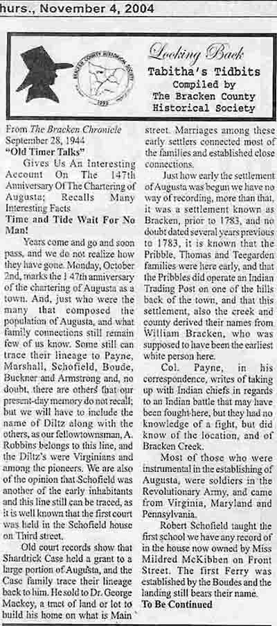 | November 4, 2004 | From The Bracken Chronicle September 28, 1944 Old Timer Talks |