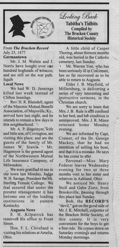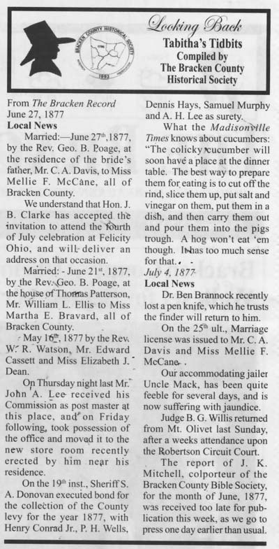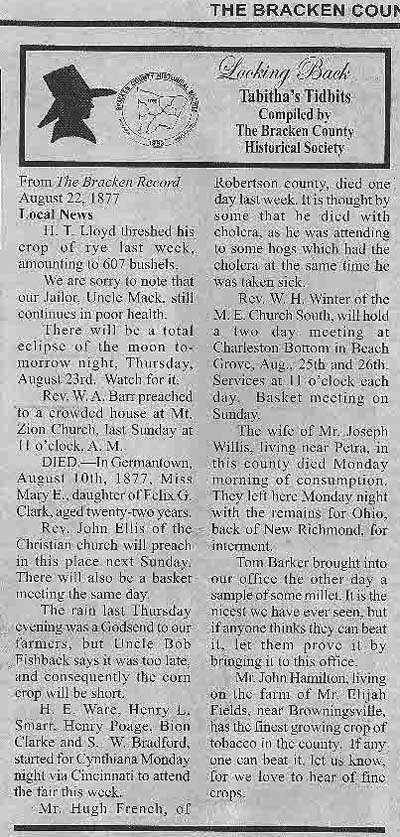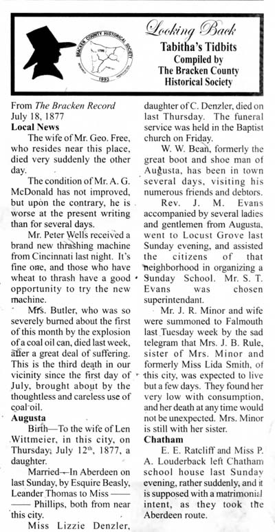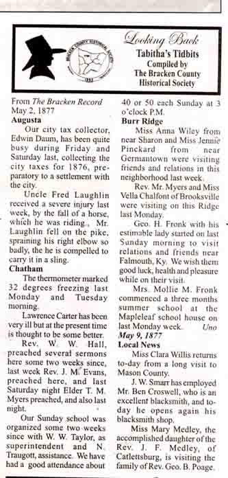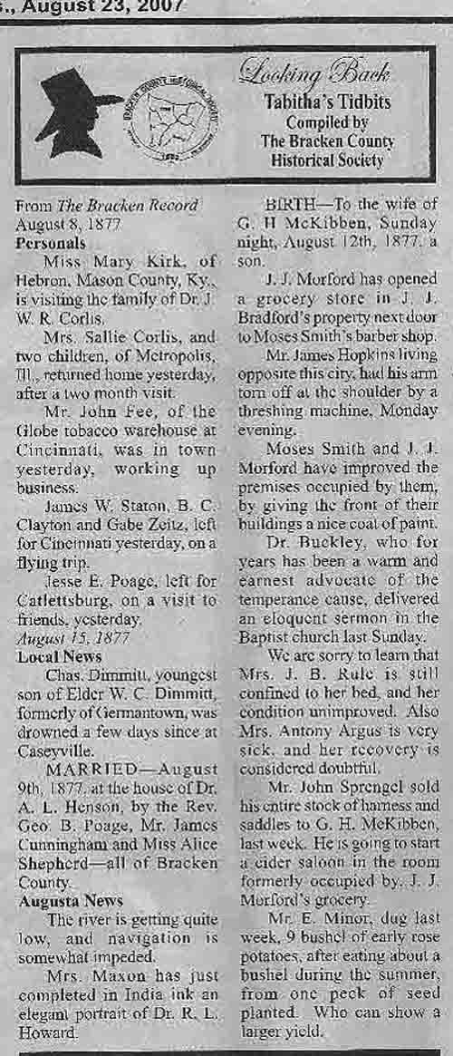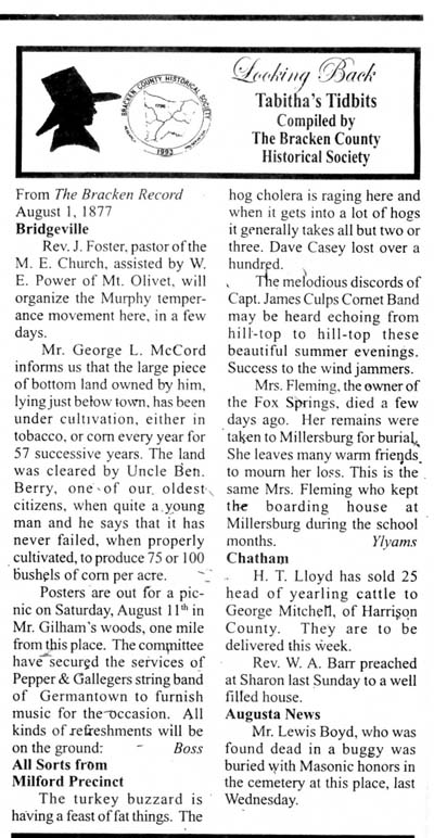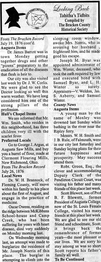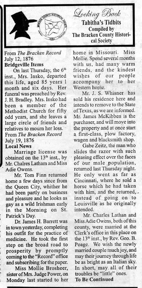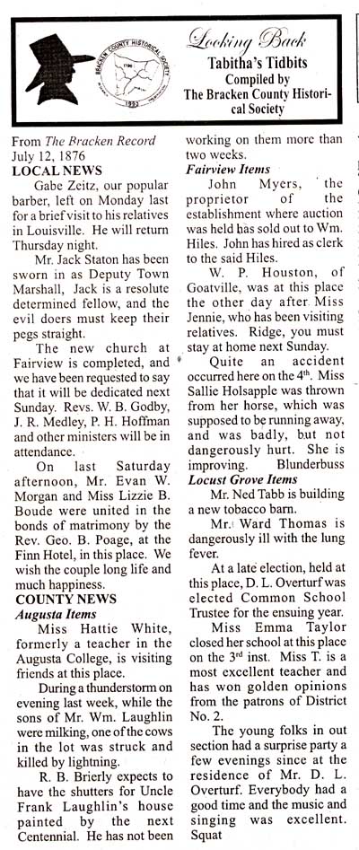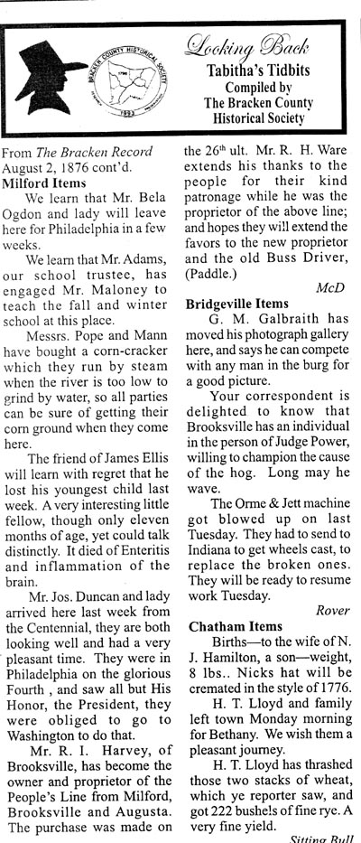 | July 28, 2005 | From The Bracken Record August 2, 1876 |