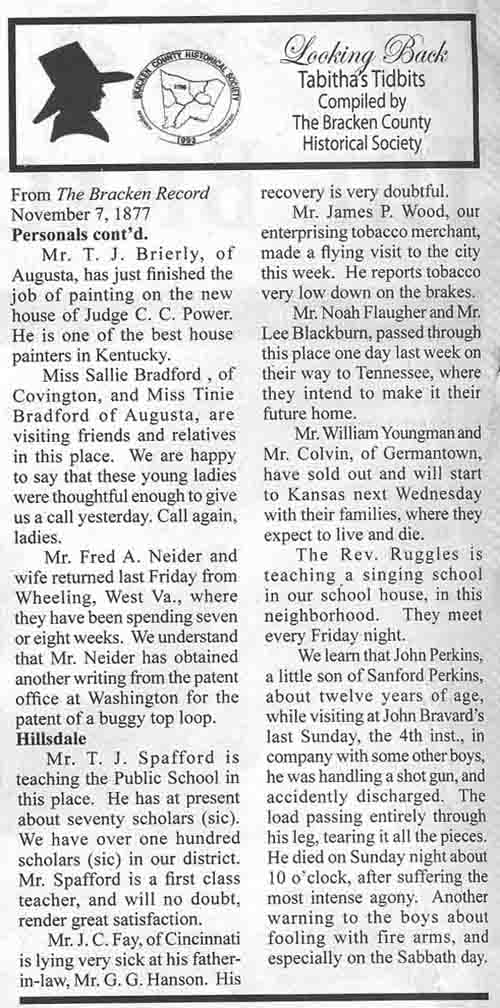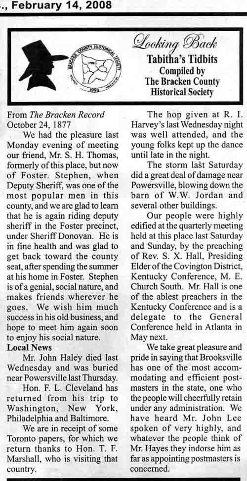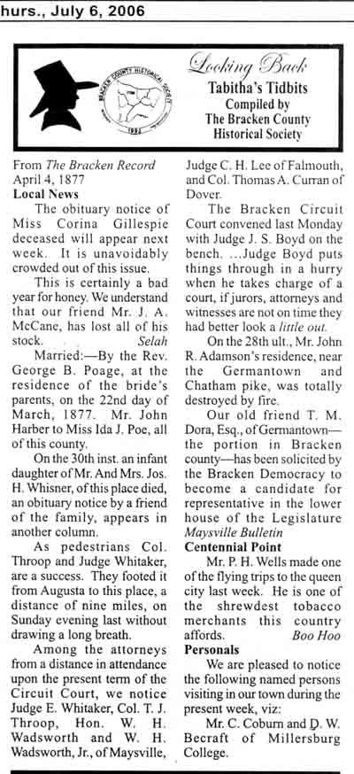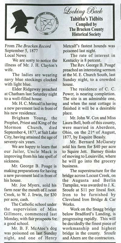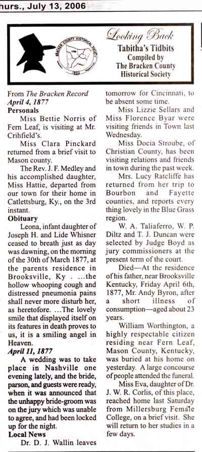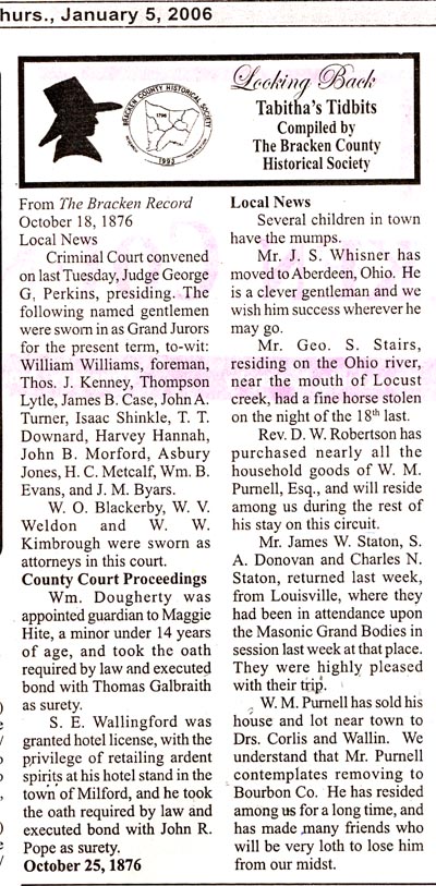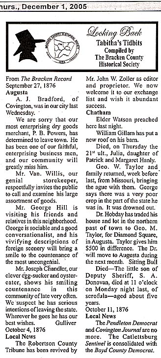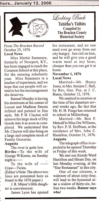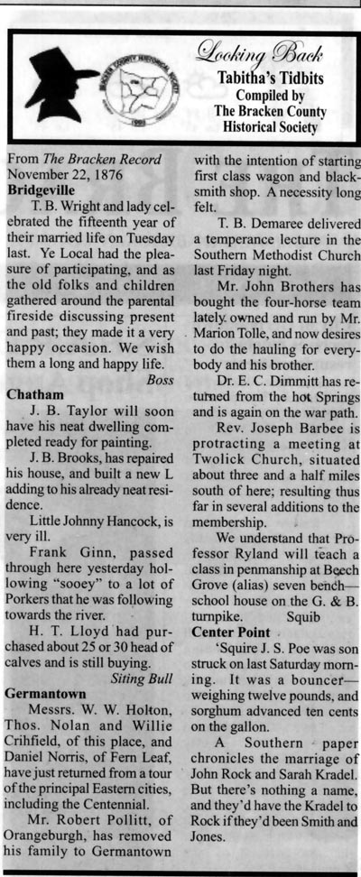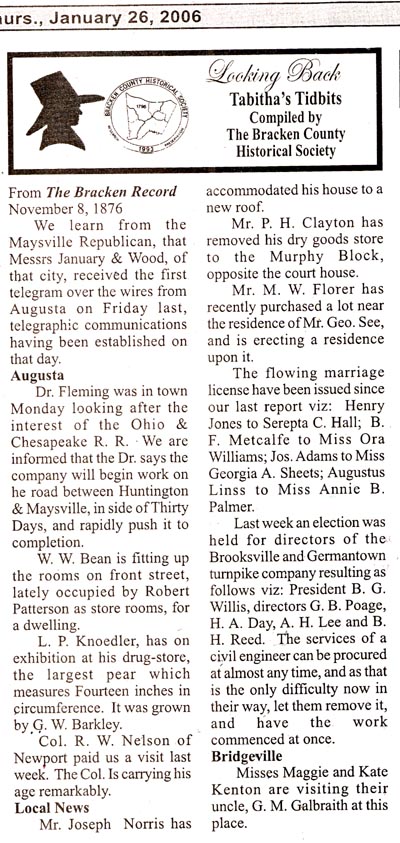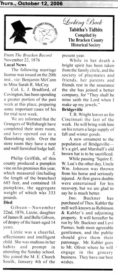 | November 17, 2005 | From The Bracken Record September 27, 1876 |