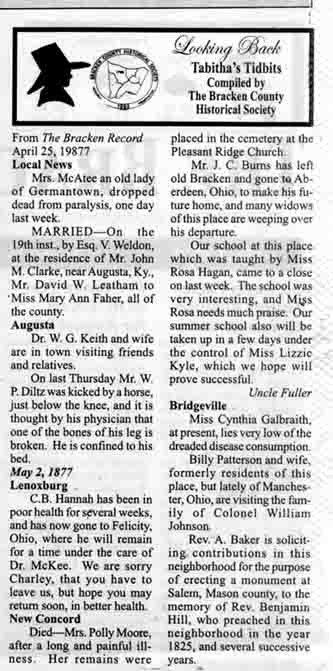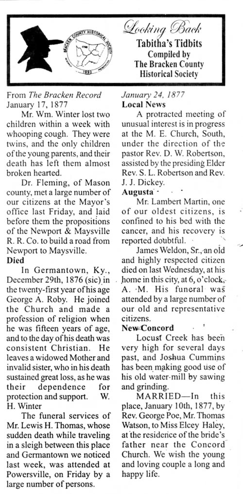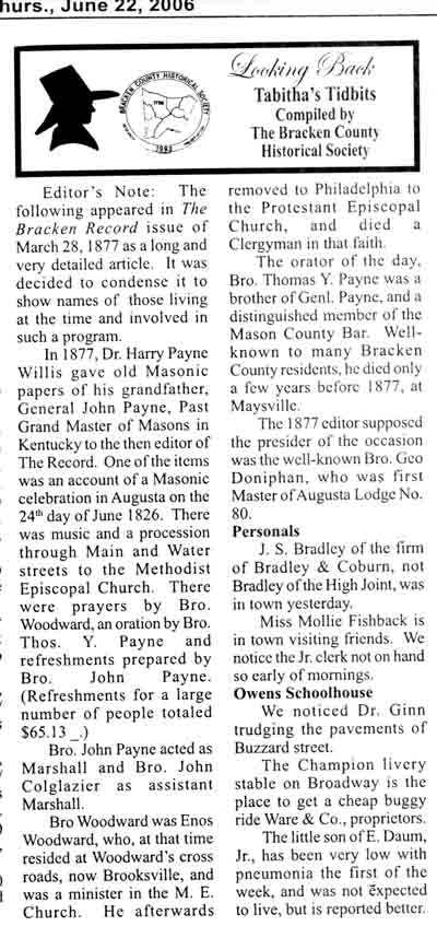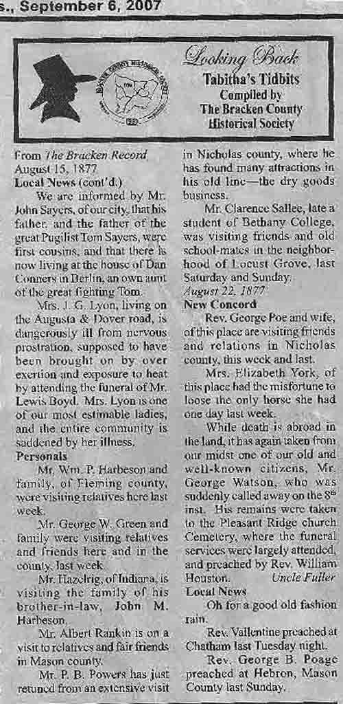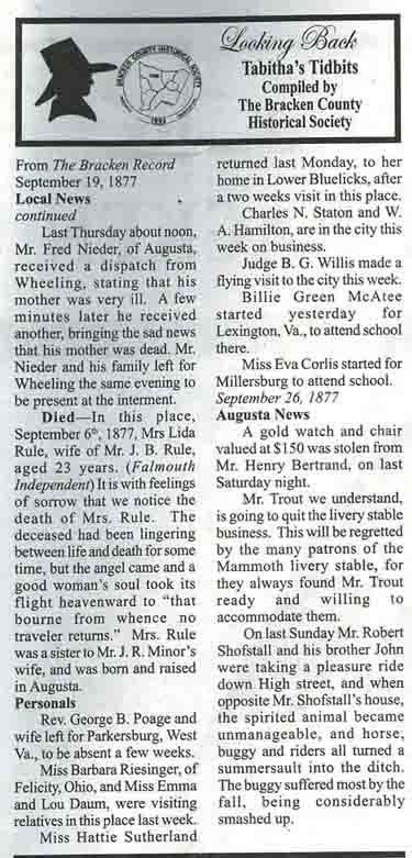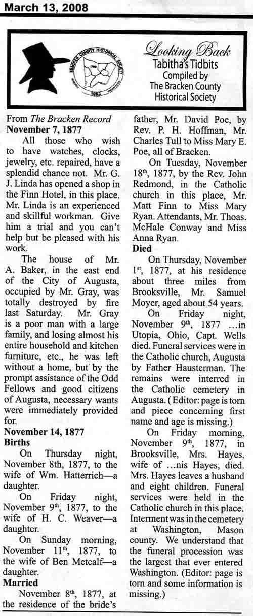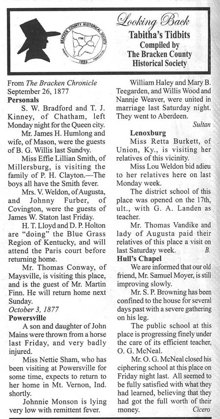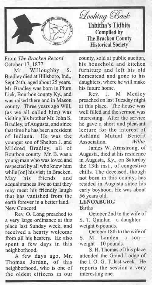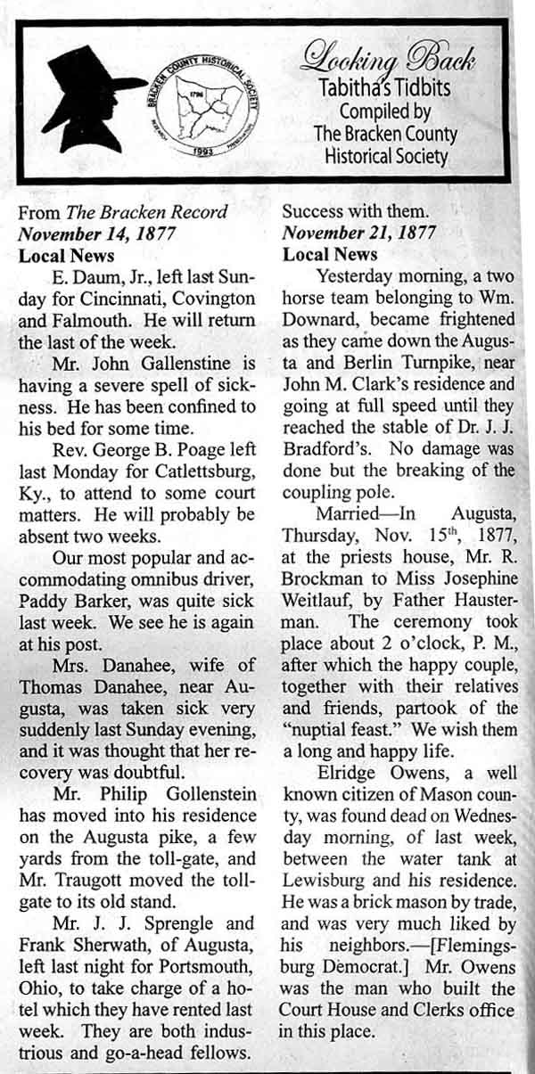 | November 17, 2005 | From The Bracken Record September 27, 1876 |
