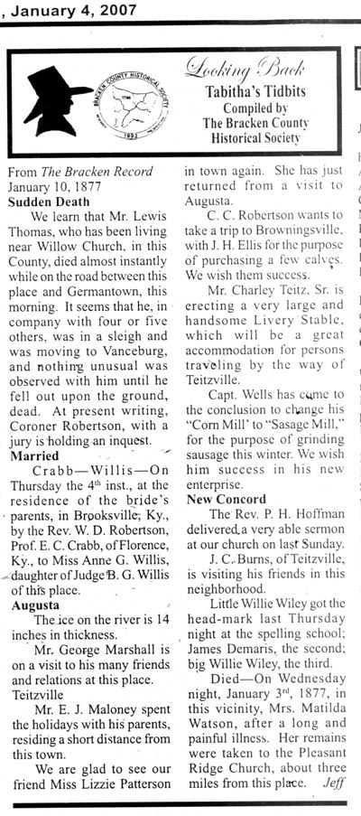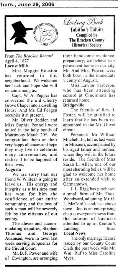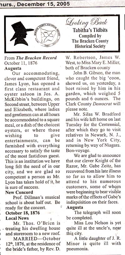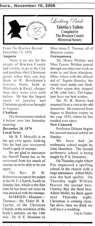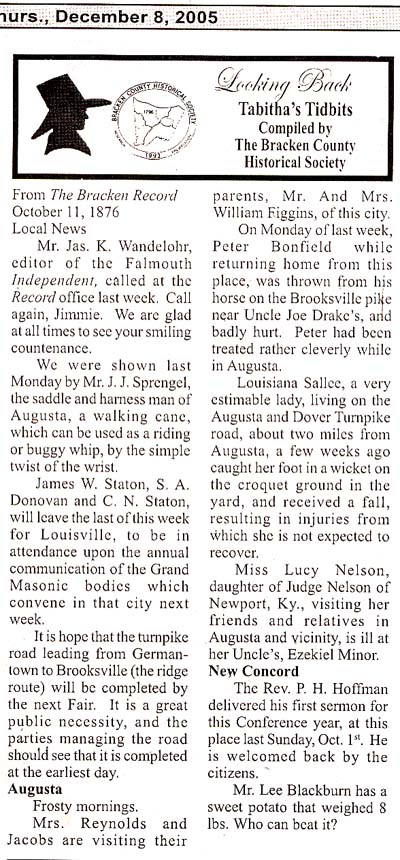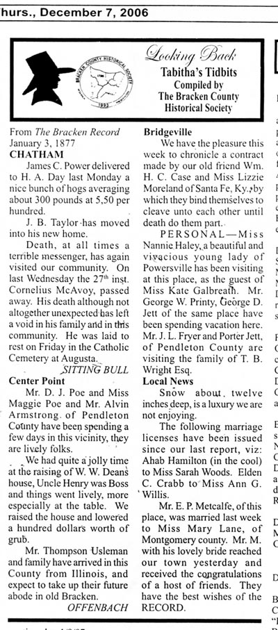 | December 8, 2005 | From The Bracken Record October 11, 1876 |