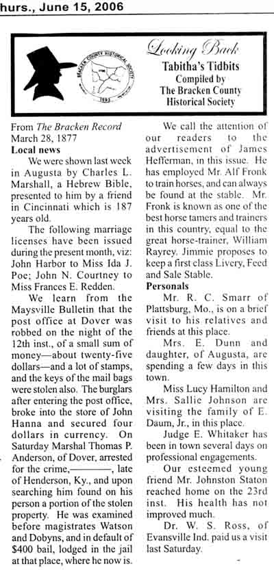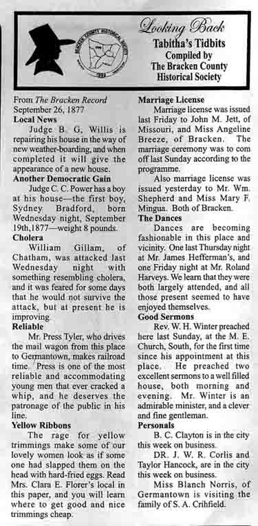 | October 27, 2005 | From The Bracken Record September 13, 1876 |