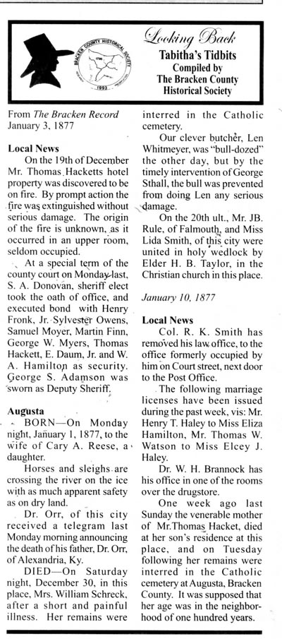 | December 29, 2005 | From The Bracken Record October 18, 1876 |