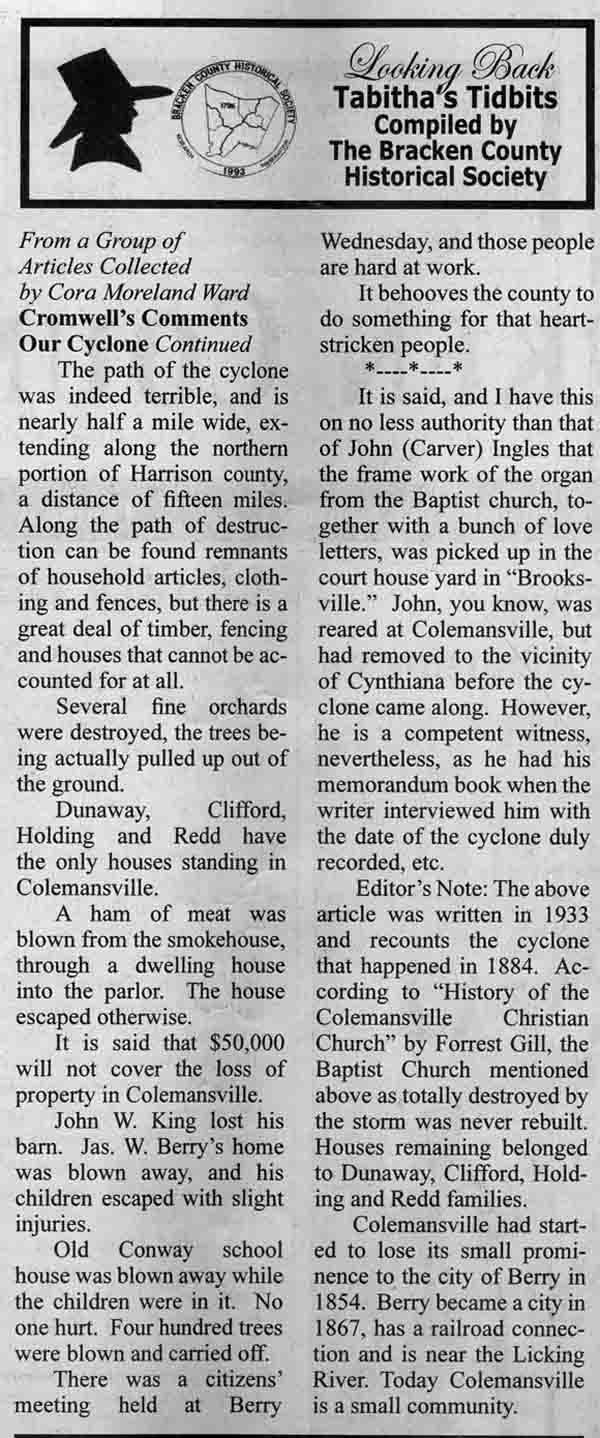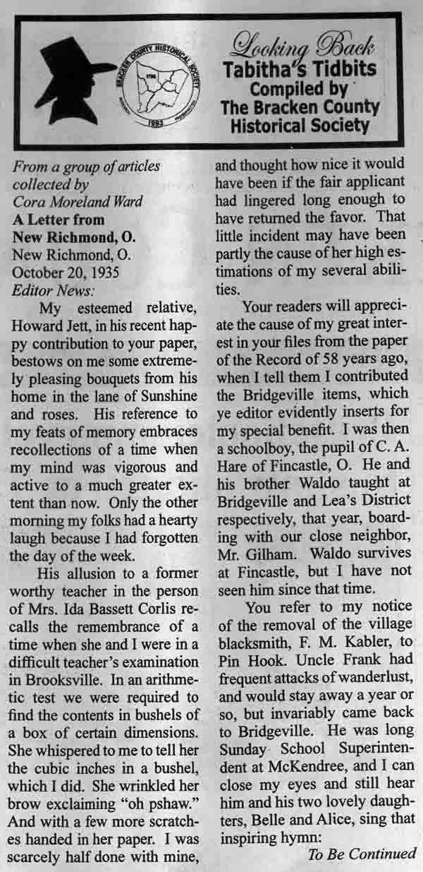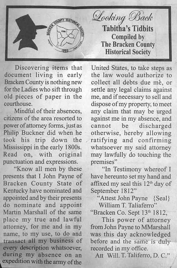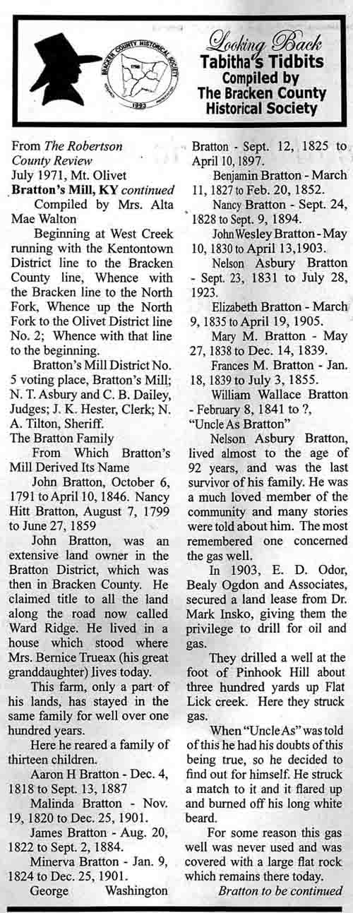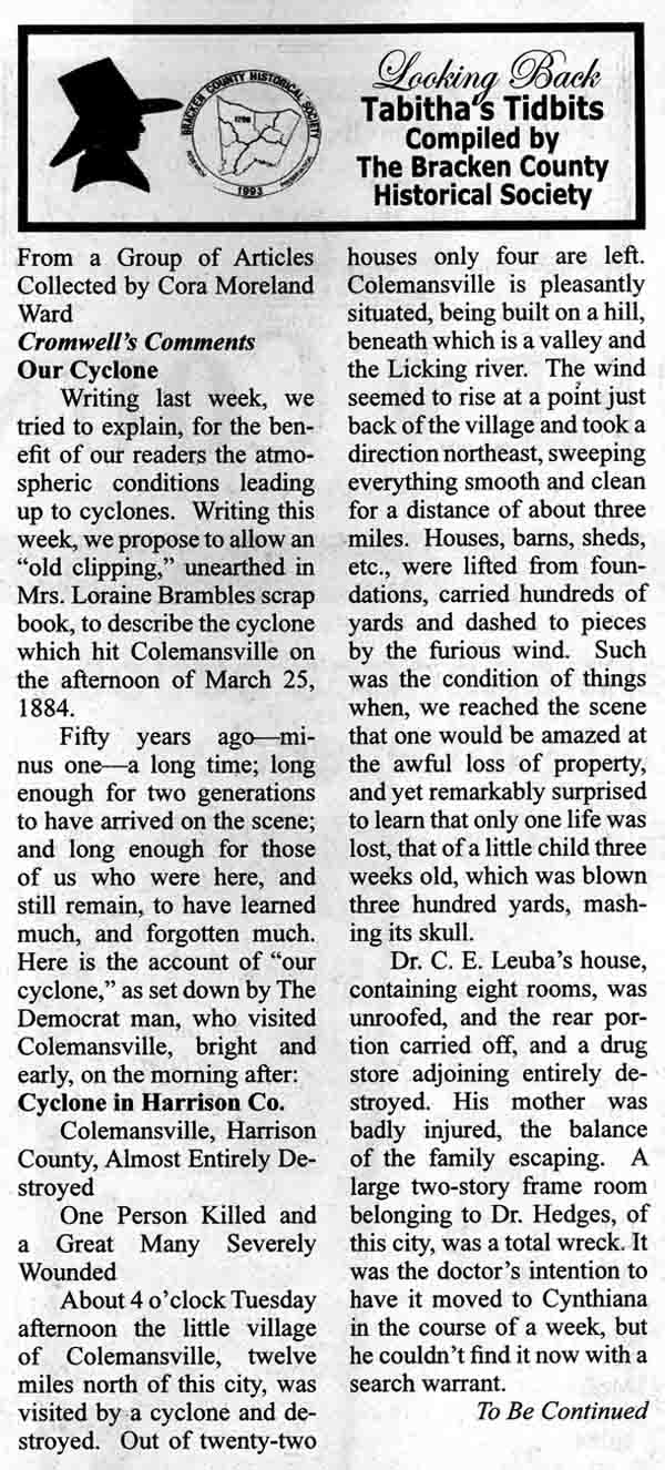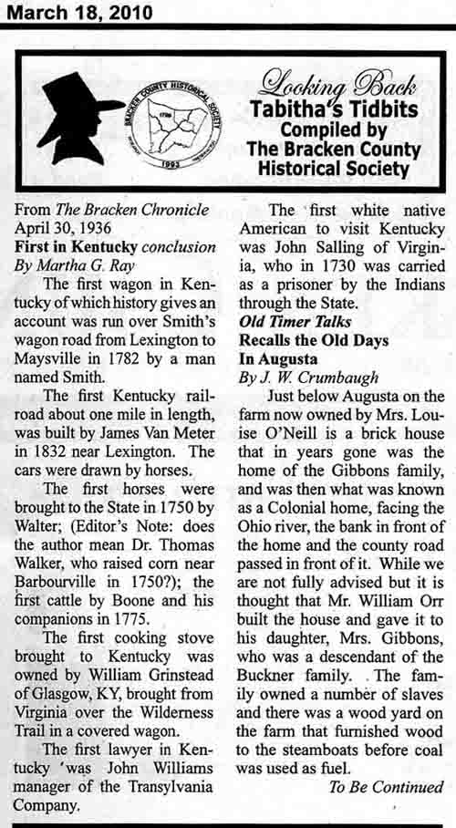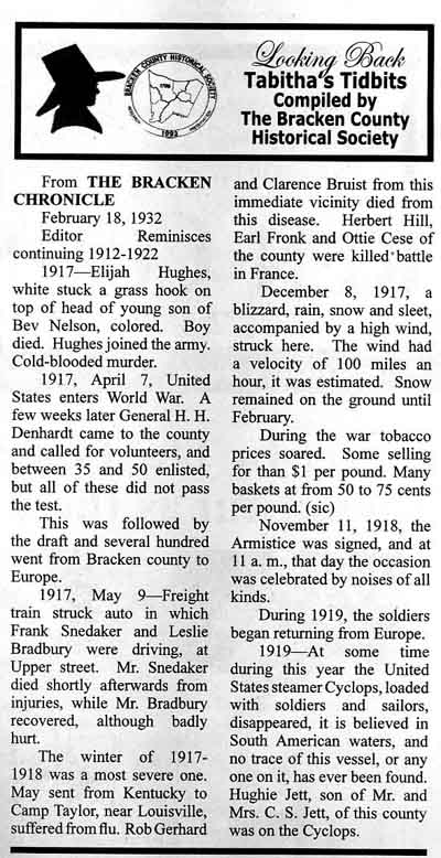 | March 25, 2021 | Reprint from "The Bracken Chronicle" |
