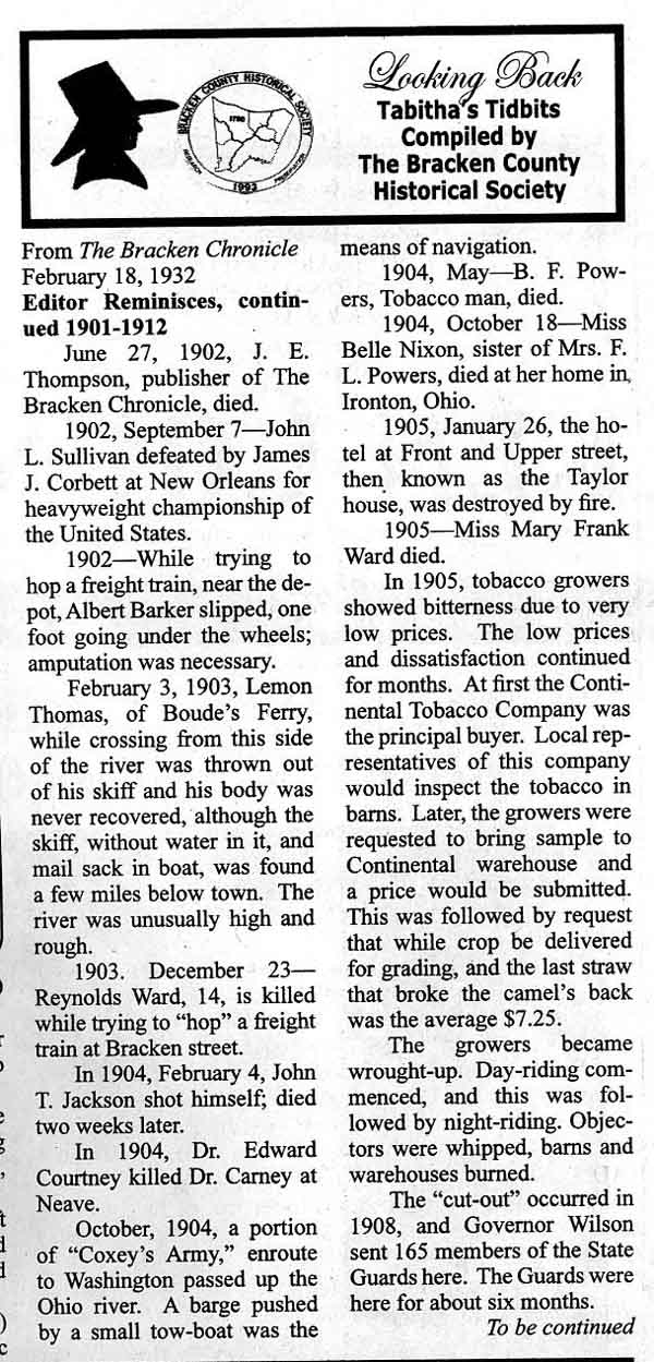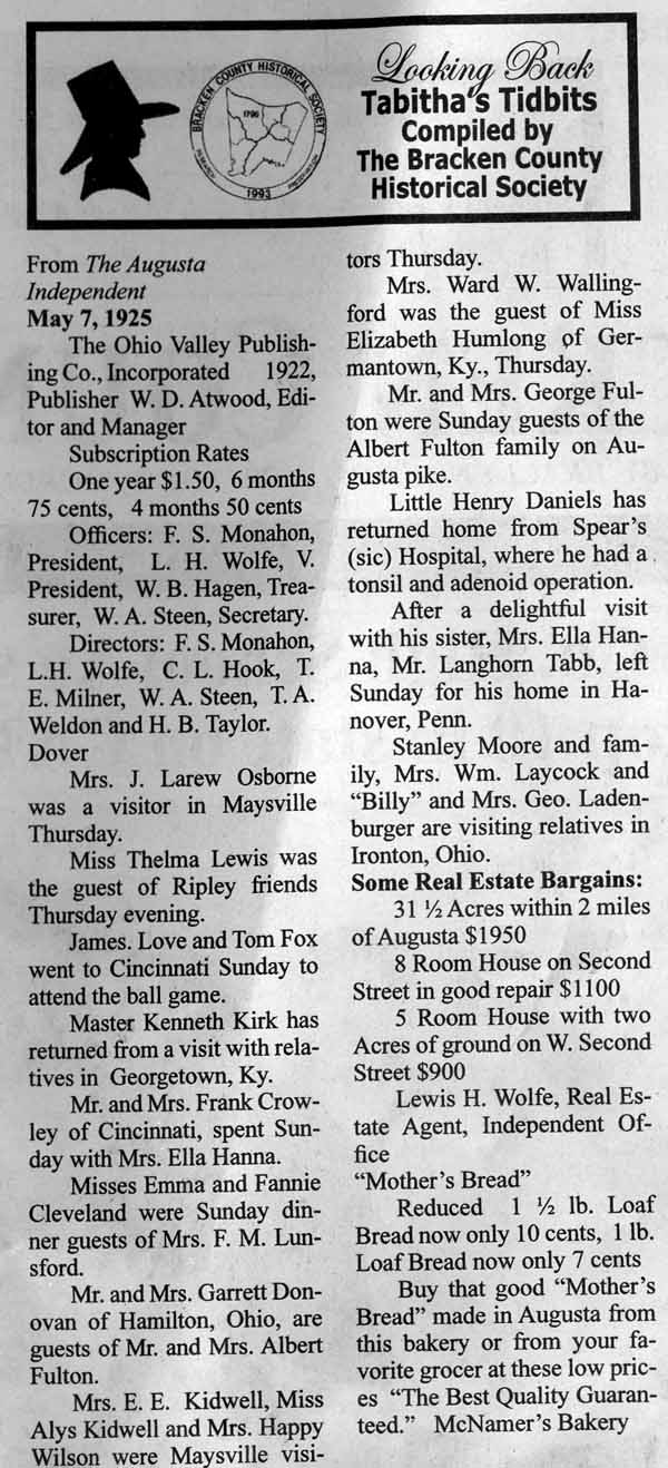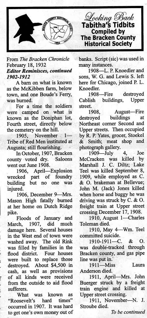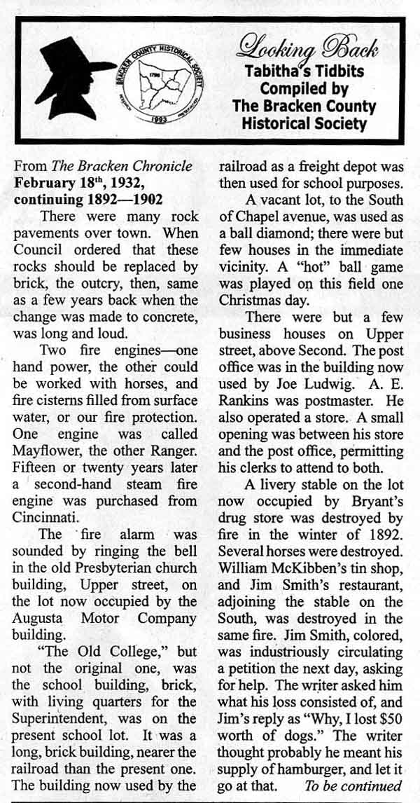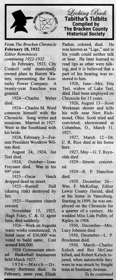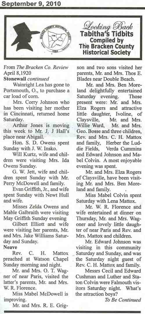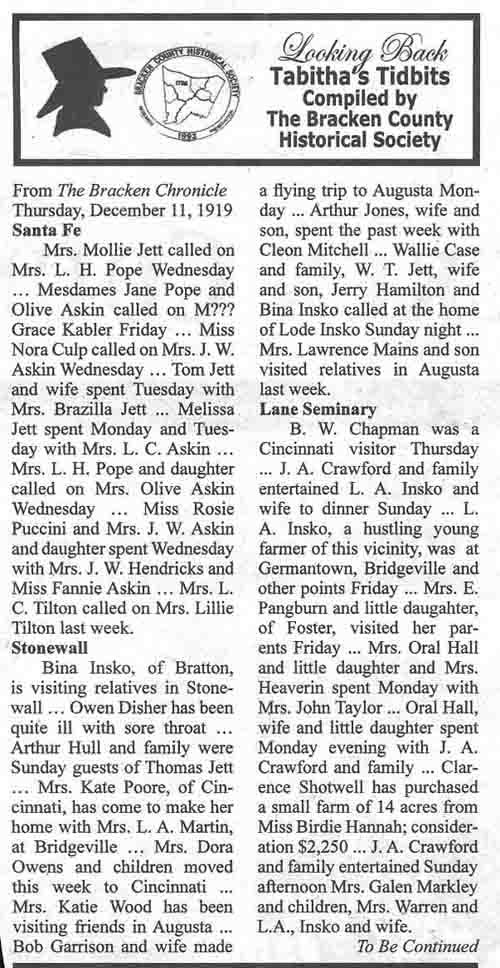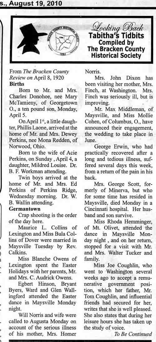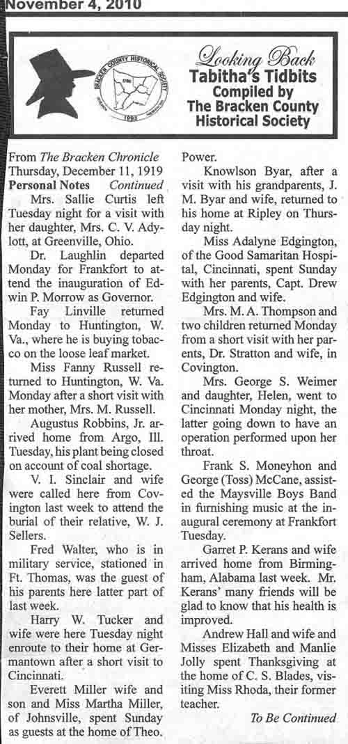 | January 2, 2020 | From The Bracken County Review September 4, 1924 |