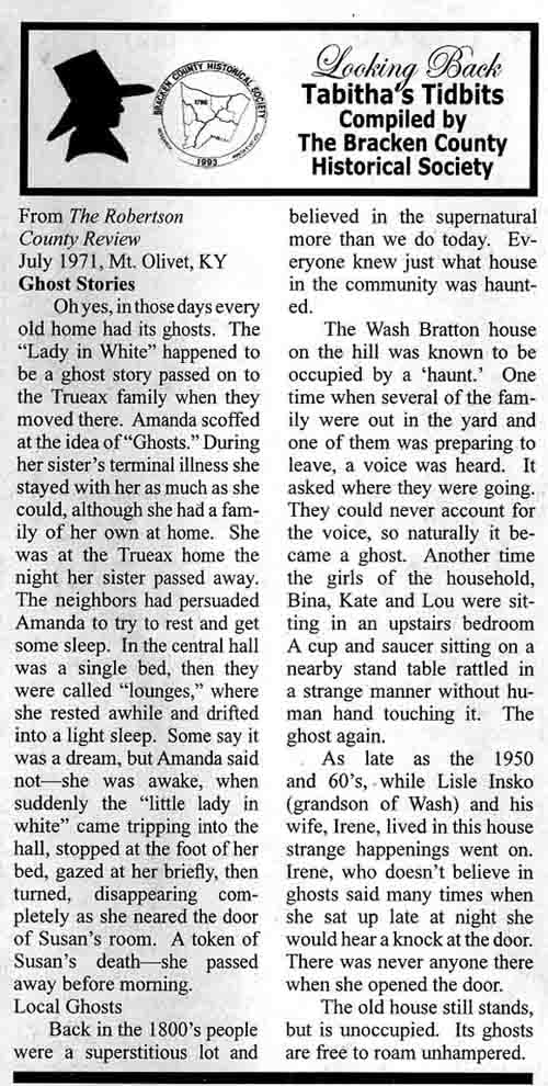 Tidbits of Kentucky Folklore by Gordon Wilson, PhD. No names mentioned | ||