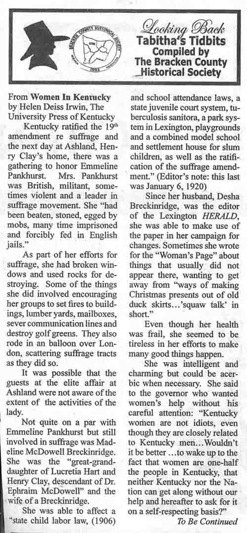 | January 7, 2021 | From Recollections:Bracken County Homemakers 1969, concl. |