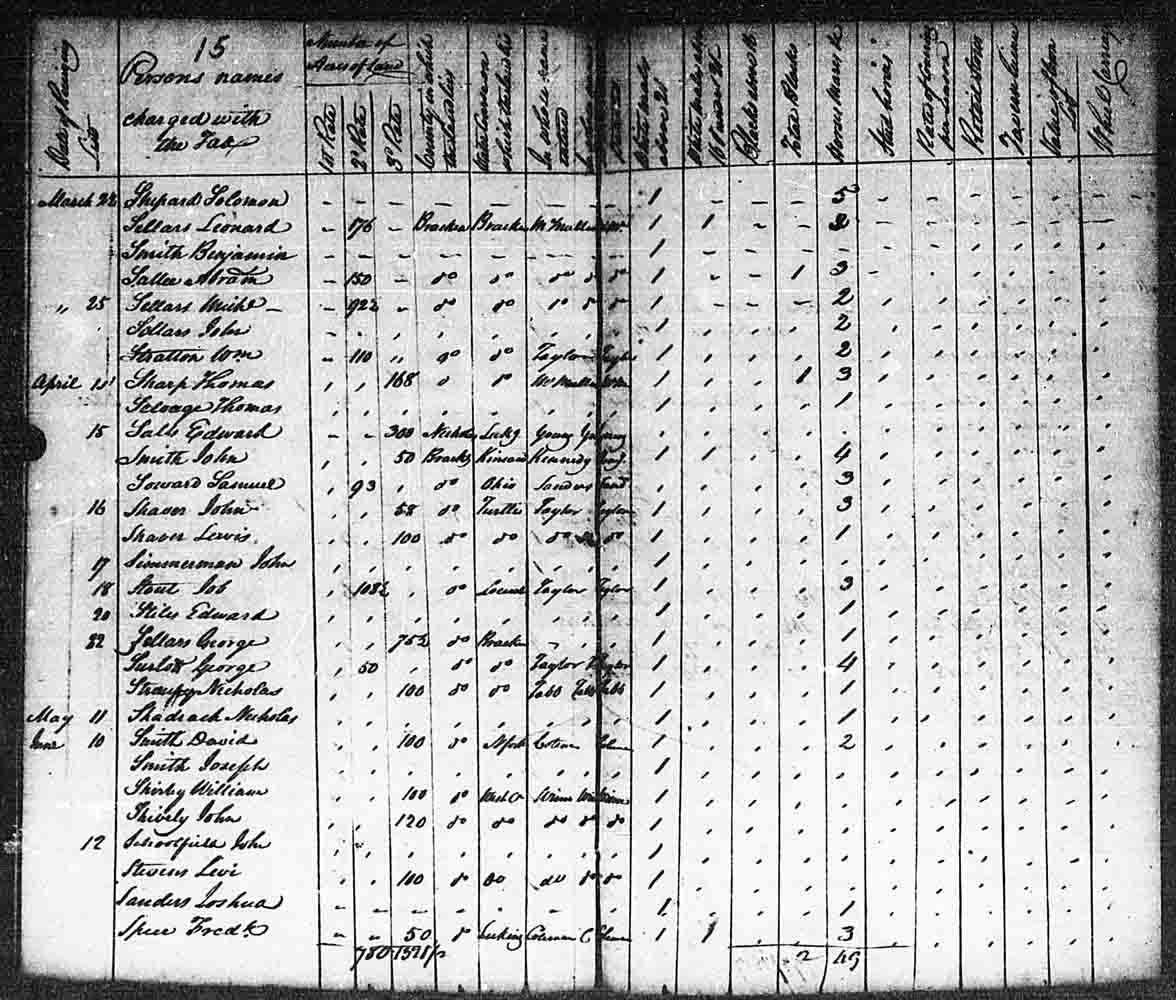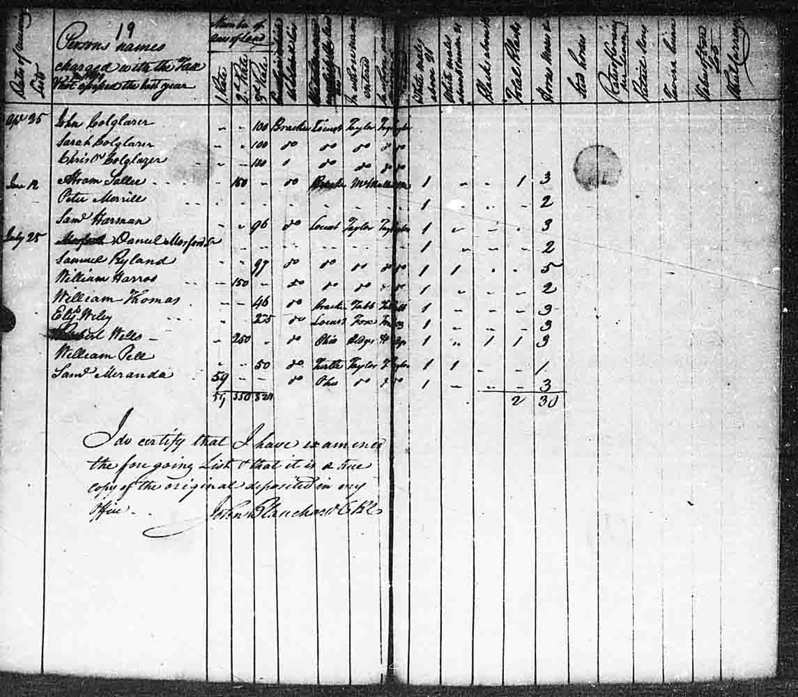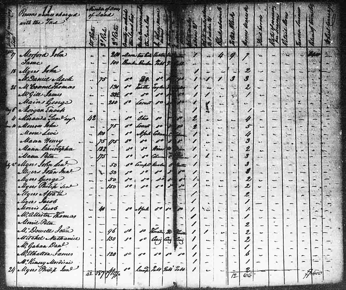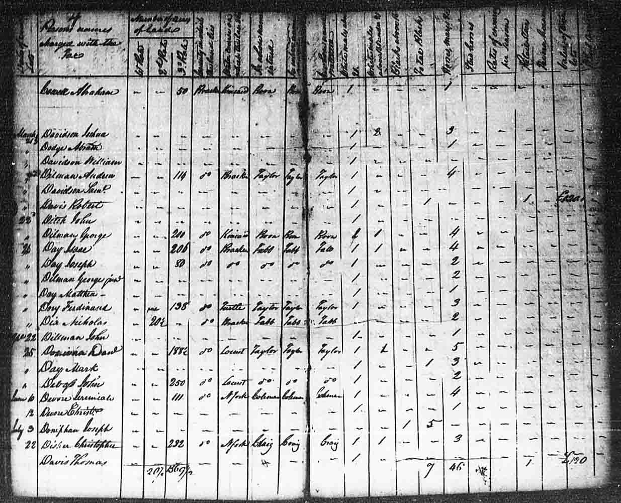 Scanned and contributed by Marla McCullough, KYGenWeb Bracken County CoordinatorSince 1790, as a requirement of the U.S. Constitution, in years ending in "0," census takers have gone out into the field to count noses. Beginner genealogists are told to start their public records research with these decennial federal census enumerations. The census records do, indeed, provide one means of pinpointing the location of a family, but they are far from comprehensive. What if the family you are seeking was overlooked? What if the census taker misspelled the surname so badly that it's beyond recognition? What about the nine years between federal census enumerations? A lot can happen in that time. Most baffling, what if your family lived in one of many states whose 1790, 1800 and/or 1890 enumerations were lost or destroyed as is the case with Kentucky? Researchers of Kentucky families have been given a gift not available in some other states, in the form of the annual county tax assessment records. Like us, our ancestors no doubt grumbled about their taxes, but their economic pain left us one of the best sources of information about the earliest Kentucky residents. The tax records reveal a lot more than the early census records. They are a year-by-year snapshot of movement within the commonwealth. They help track down ancestors affected by sudden population growth and the need to carve new counties from parts of other counties. They offer insight into the financial condition of a family. Depending on the way the tax enumerator laid out his books, it may be possible to extrapolate many details. For example, the names of watercourses and the person who filed the original land title entry may help pinpoint a deed and location of land your ancestor owned. Some tax books show the date the tax man visited your ancestor. By abstracting all names of persons visited that day you can reconstruct your ancestor's neighborhood, and possibly find his (and, yes, her) relatives. Scanning and cropping these images is very time consuming, and it isn't feasible to put all years on-line. As time permits, I plan to add years ending in "5" to bridge the halfway point between the federal census enumerations. I make no guarantees about the legibility of all images. Some old tax books are in terrible condition; torn, water damaged and chewed by insects. Please do not contact me to help interpret a name, as the image you see represents my best effort to make the writing legible. To browse 1805 Bracken County Tax Rolls alphabetically by surname, jump to: Film Start - Title Page - A, B - B, C - C - C, D - D, E, F - G, H - H - H, I, J, K - K, L - L, M - M - M, N, O - O, P - P, R - S - S, T - U, W - W, Y - Late Stragglers - Summary Saturday, 04-Jan-2025 18:19:59 CST Passed W3C link-check on December 30, 2024. This site is not responsible for URL changes by managers of external websites. | |