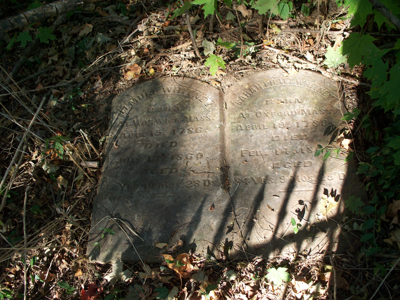 [Double stone] Sarah Pratt Whitney Born Oxford Mass April 19, 1783 Died Feb. 14, 1868 Aged 84 Yrs. 9 Mos. 25 Ds. |