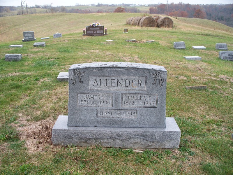 James F. Allender 1871-1936 [Masonic symbol] Luella F. Allender 1872-1947 Jessie M. Allender 1913 |