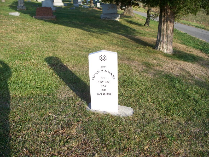 Francis M. Allender Pvt. Co. 18 KY Cav. CSA 1843 1-25-1898 |