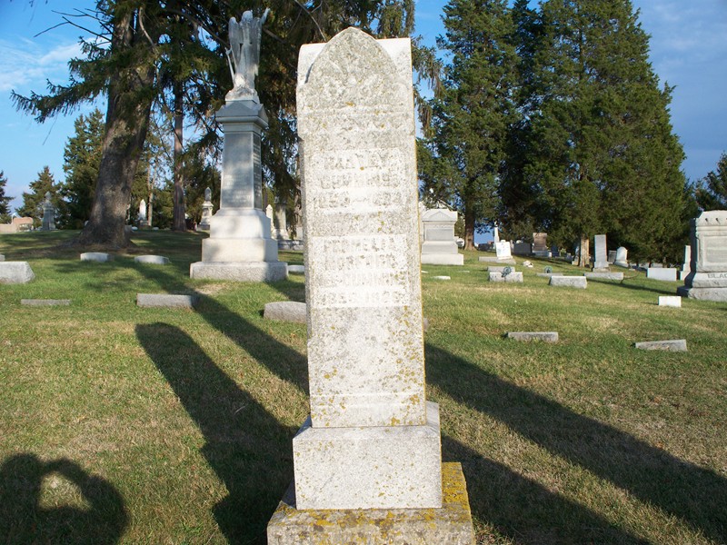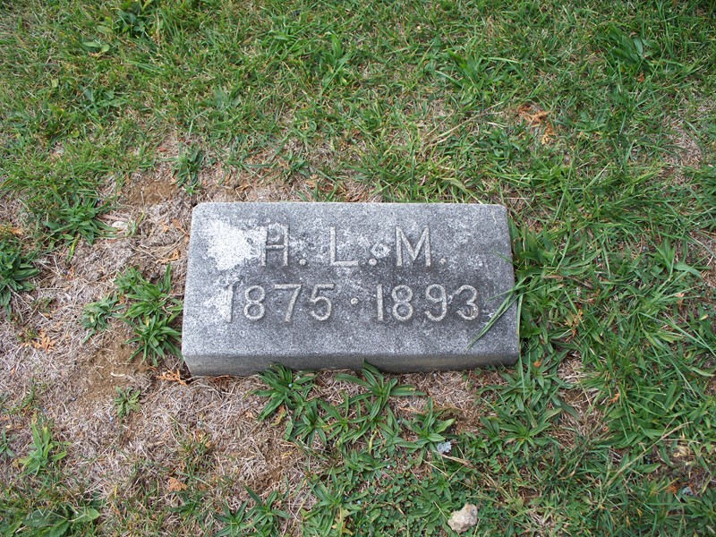 Minnie Tyler 1-1-1864 Born in Aurora Ind. 8-8-1888 Graduated 6-21-1888 [Same stone as A.J. Markle] |