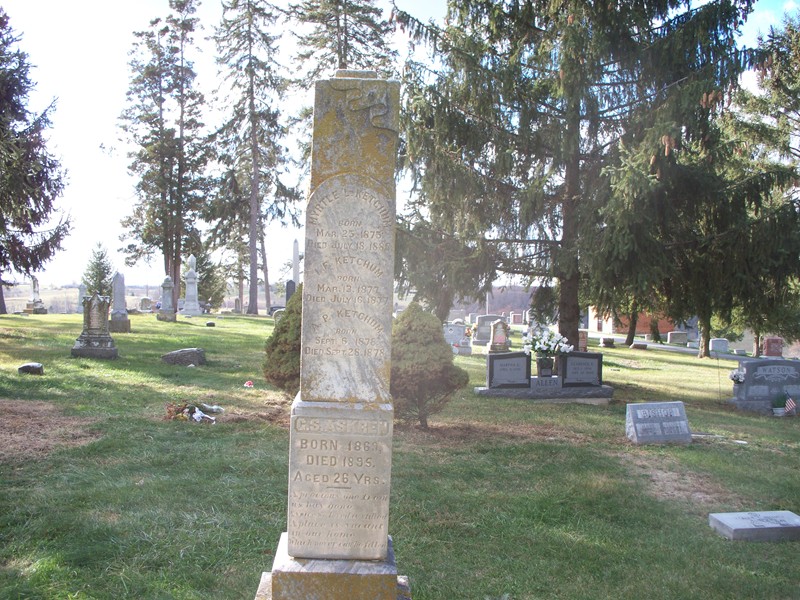 Ketchum, Myrtle L. 3-25-1875 7-18-1888 I.F. Ketchum 3-13-1877 7-16-1877 A.P. Ketchum 9-6-1878 9-28-1878 C.S. Askren b. 1869 d. 1895 aged 26 years. |