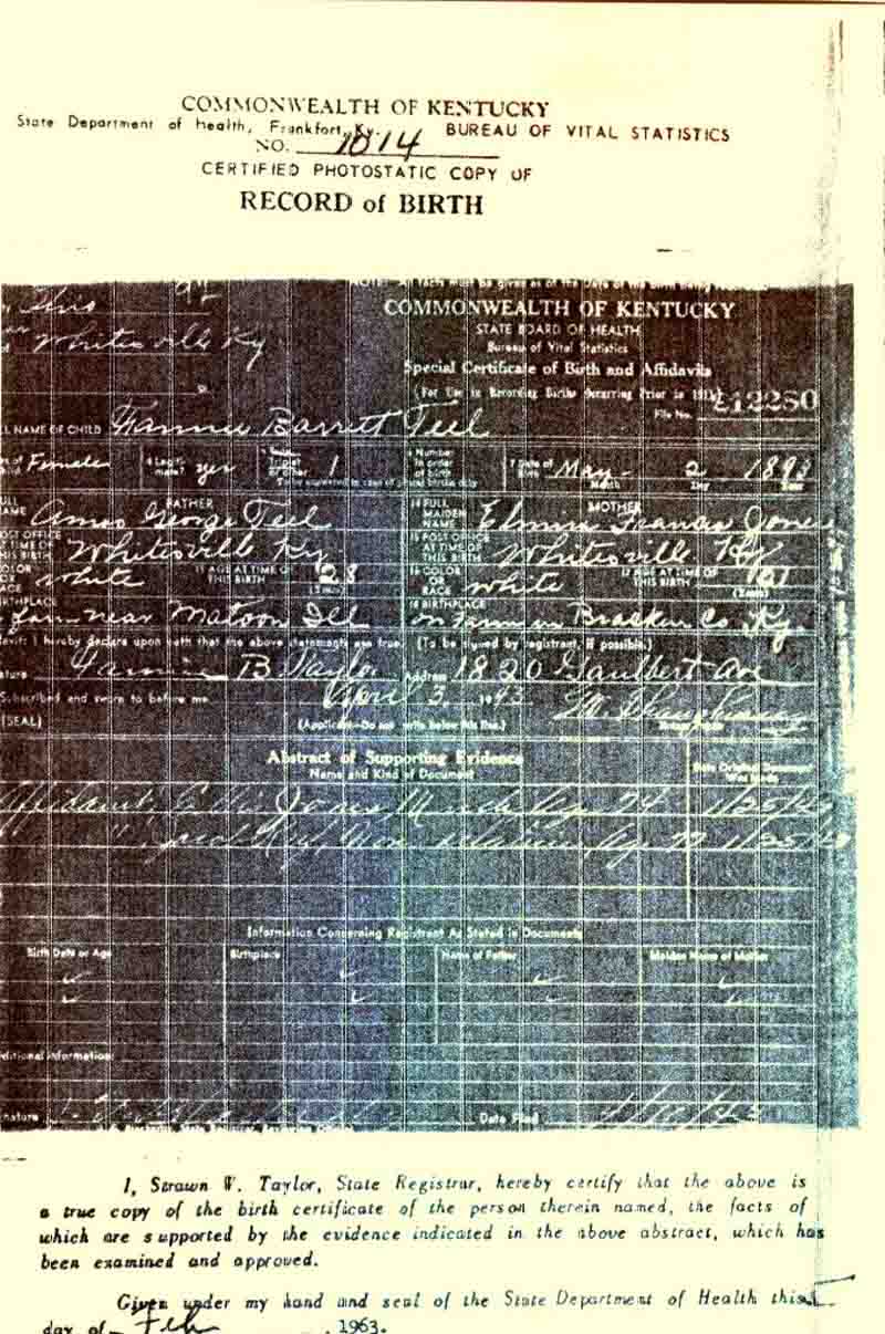 Fannie Barrett Teel married Archie Otis Taylor on Dec. 24, 1913, and 5 children were born of this union: