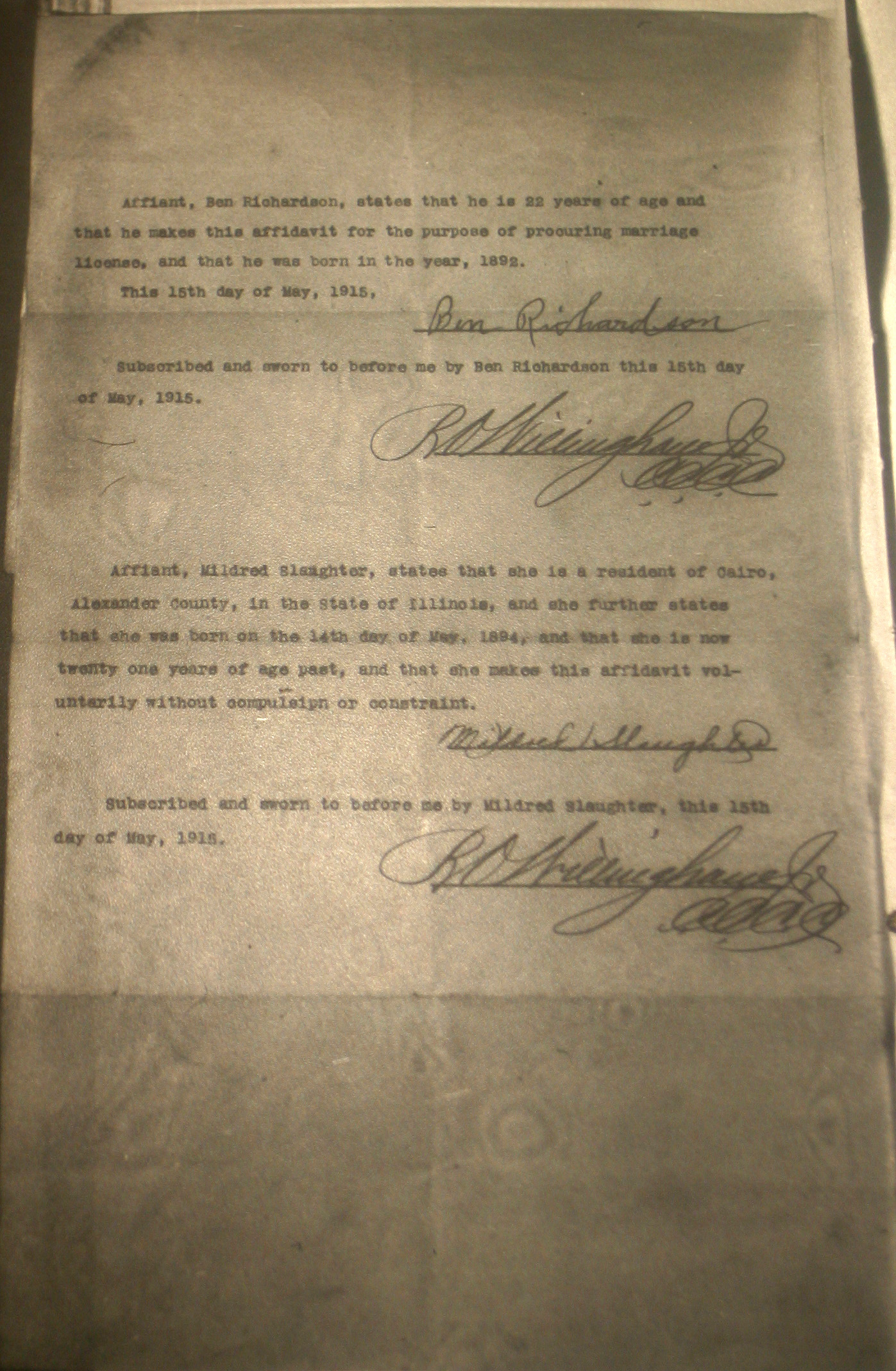 Marriage: 16 May 1915 at Bardwell