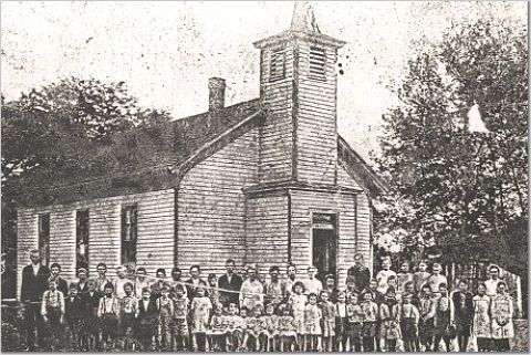 Flora Smith, Anna John Smith, on ends of picture, Clay Tharp, teacher on