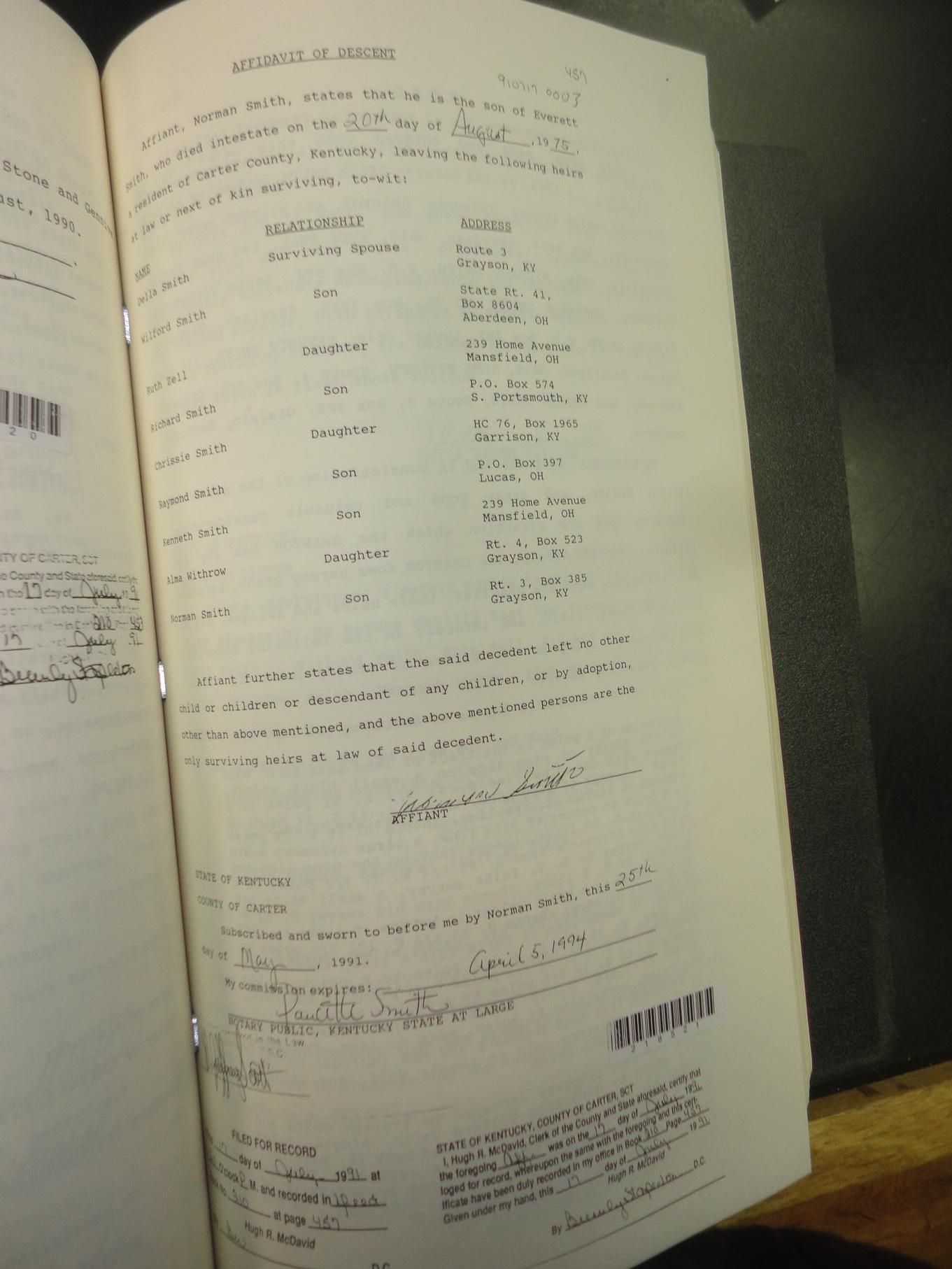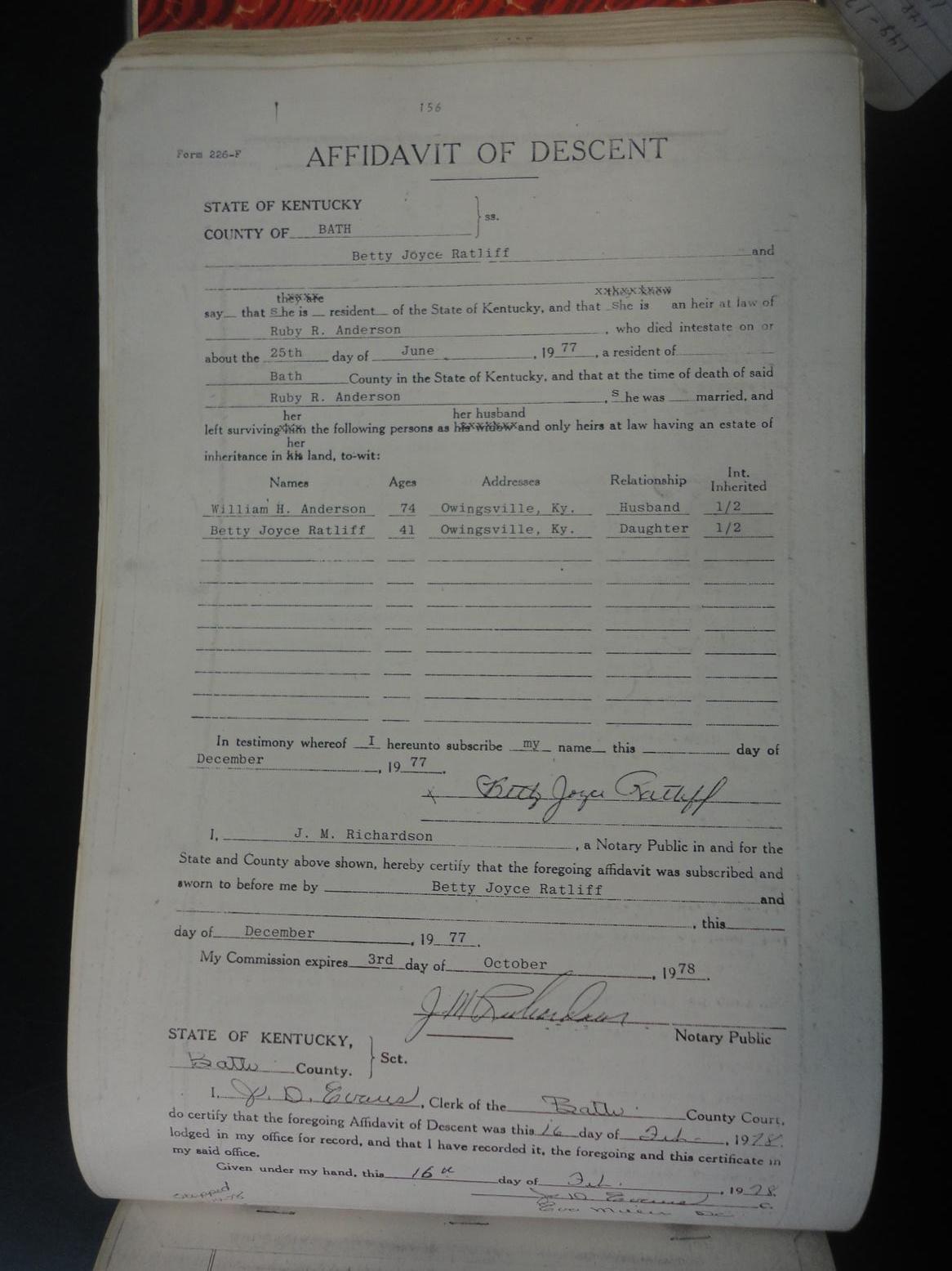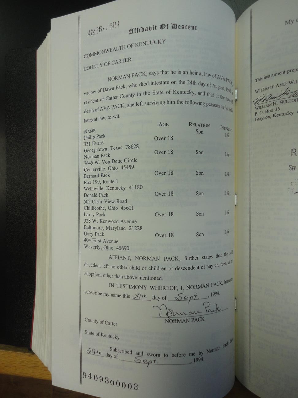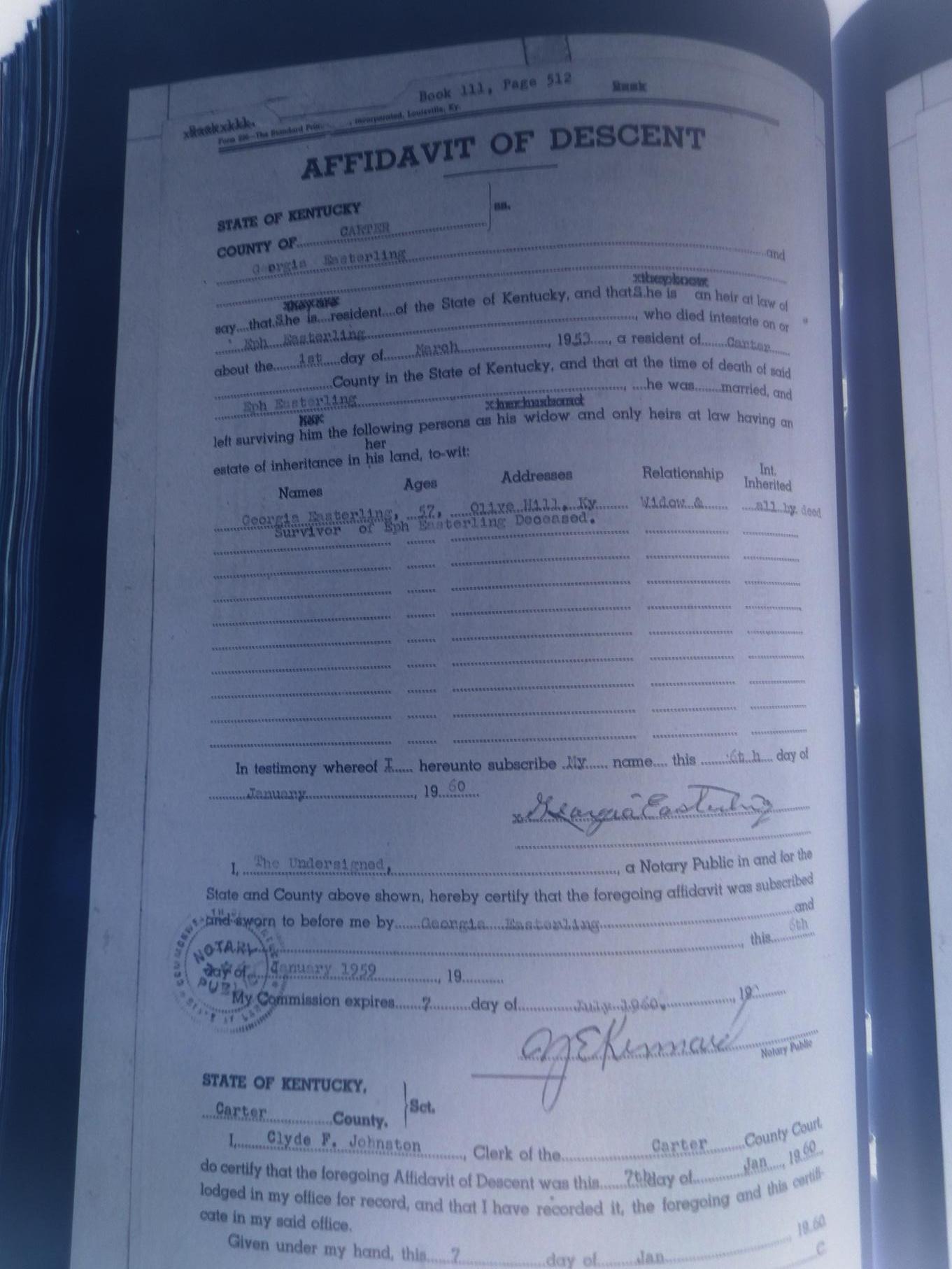 Affidavit of Descent Explanation/Definition Submitted by: Sherry Lowe