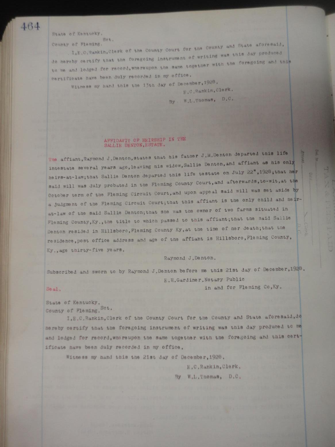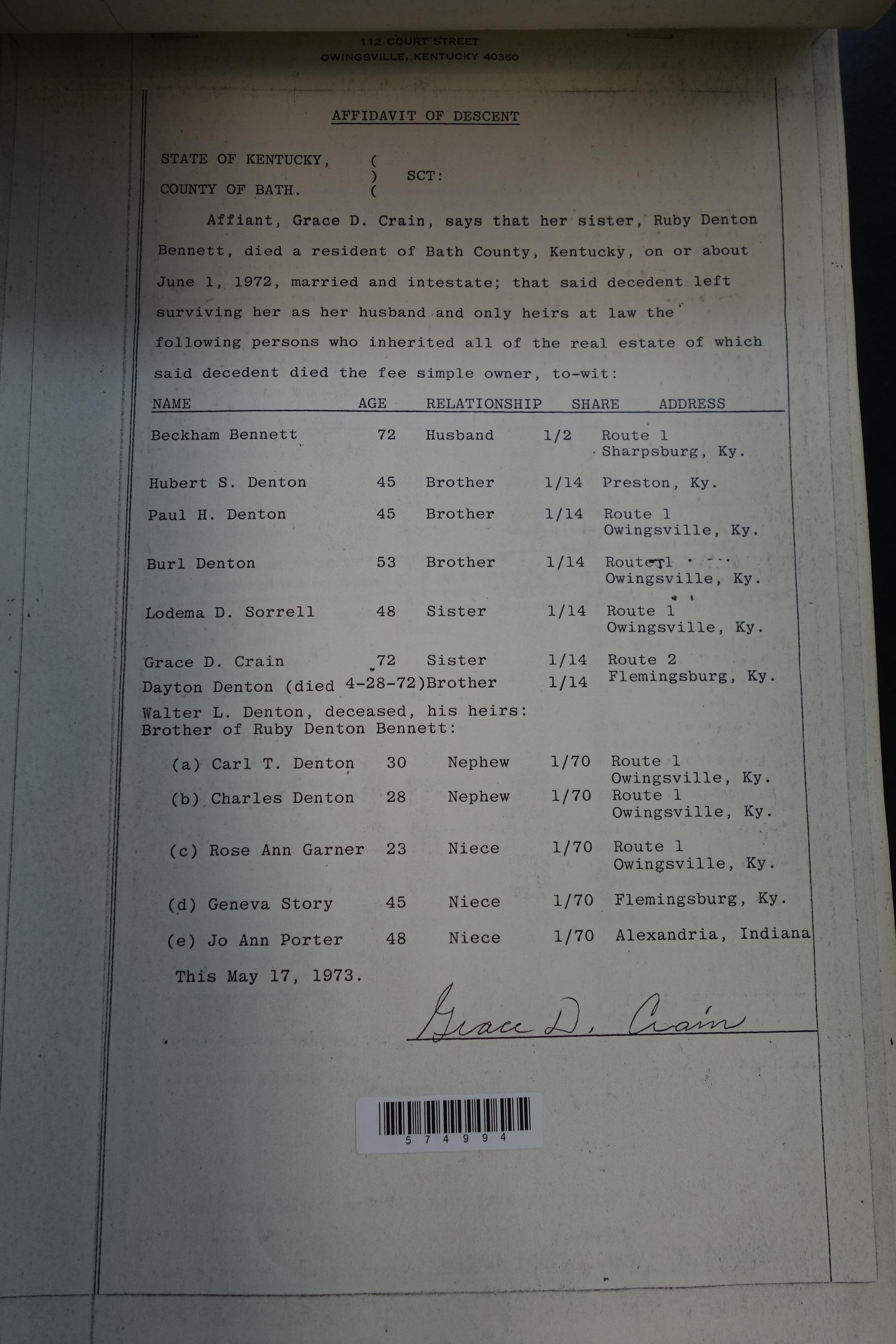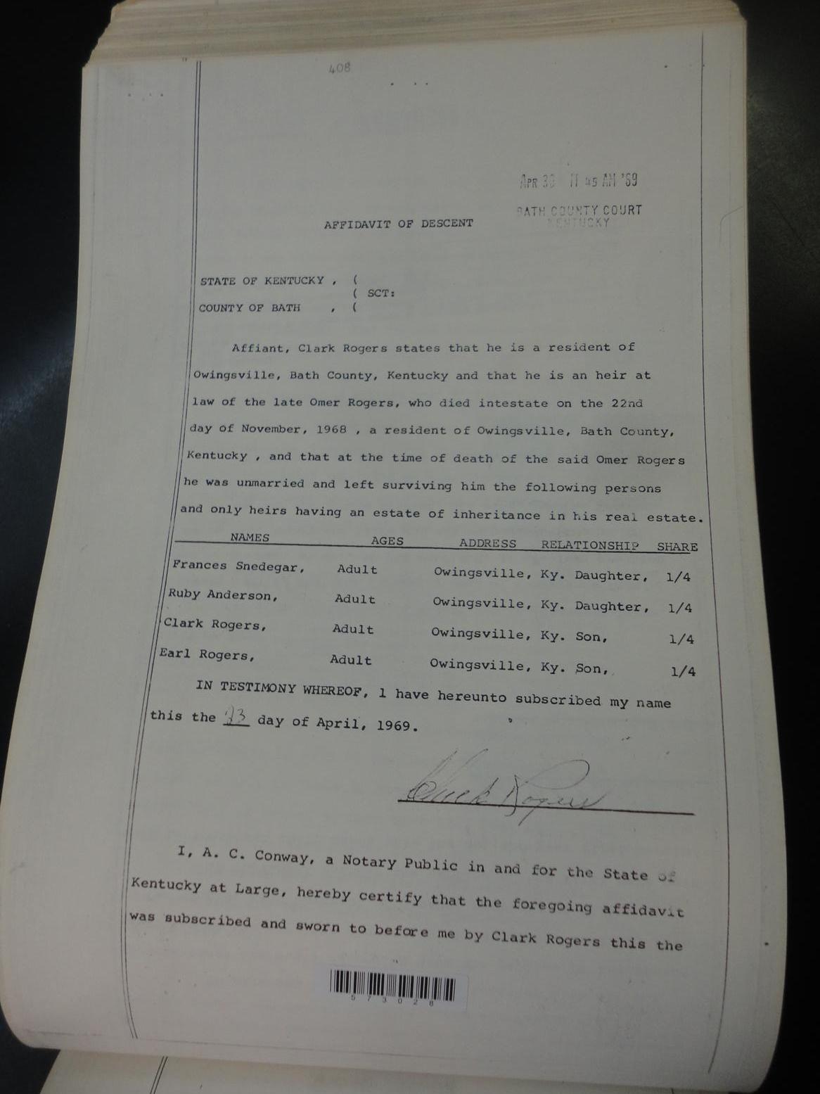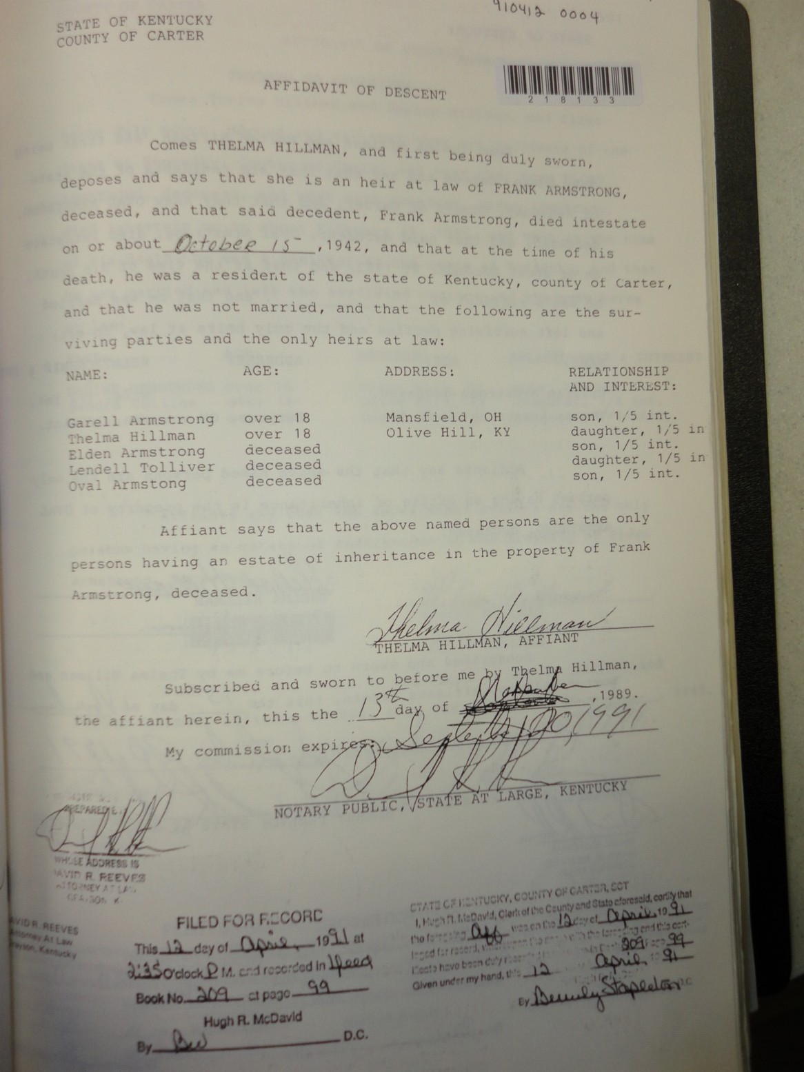 Affidavit of Descent Explanation/Definition Submitted by: Sherry Lowe