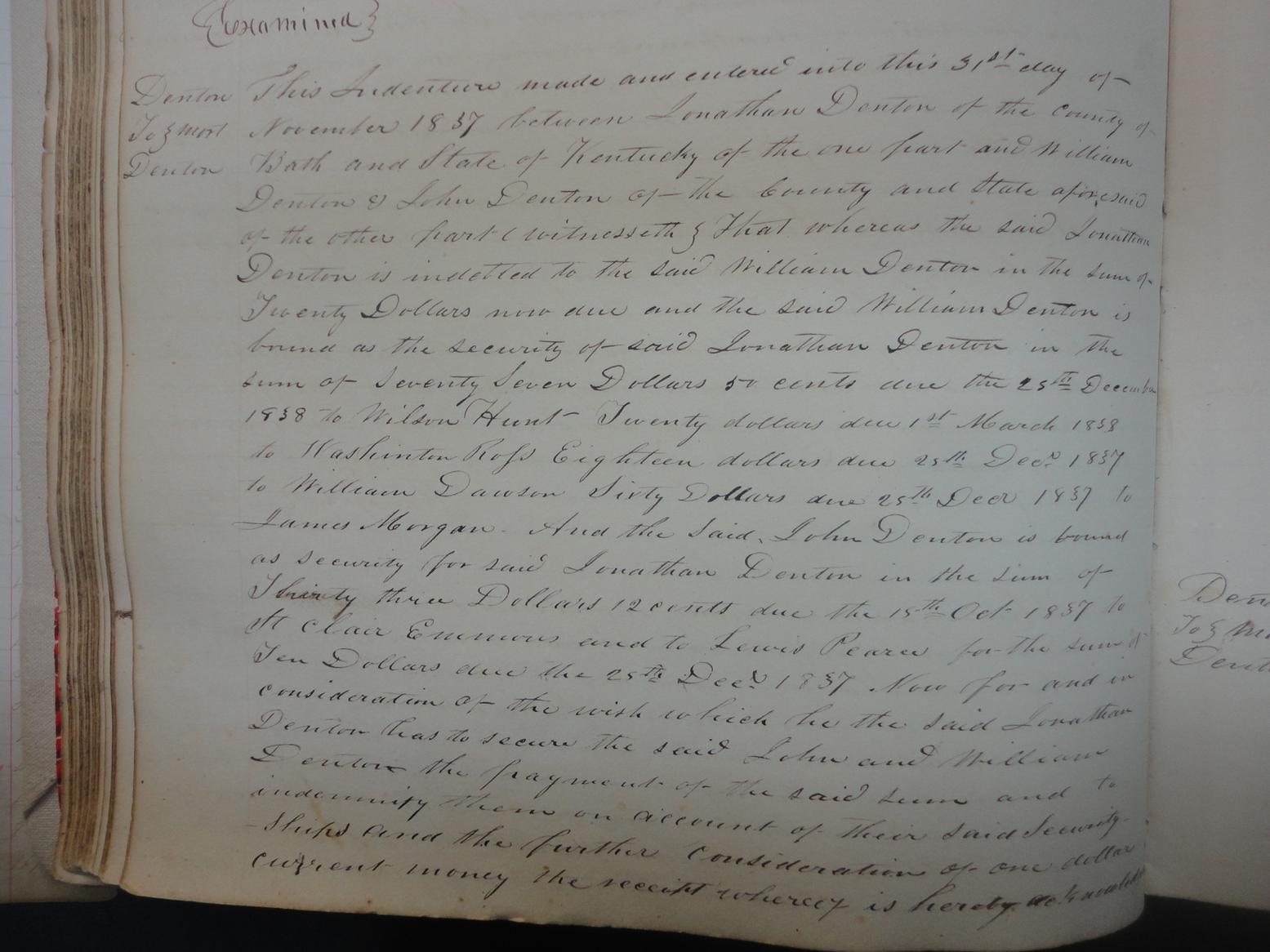 Denton is indebted to the said William Denton in the sum of