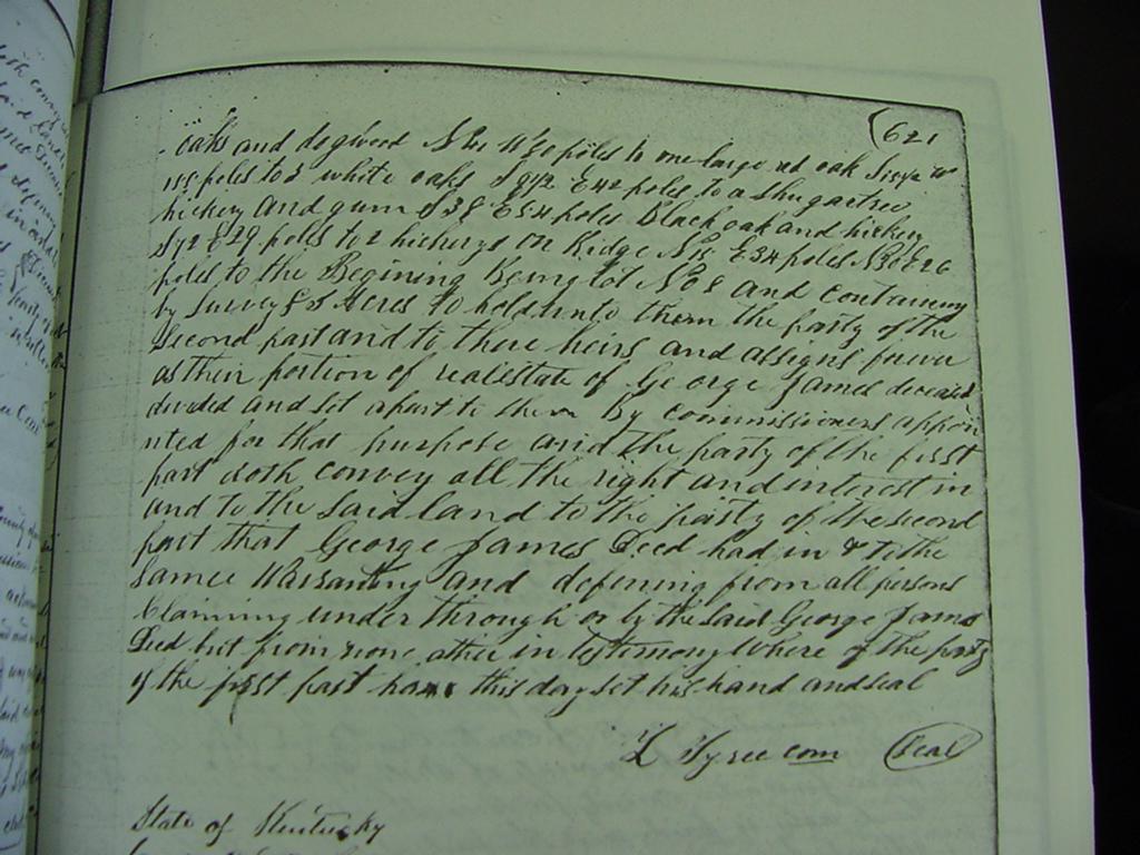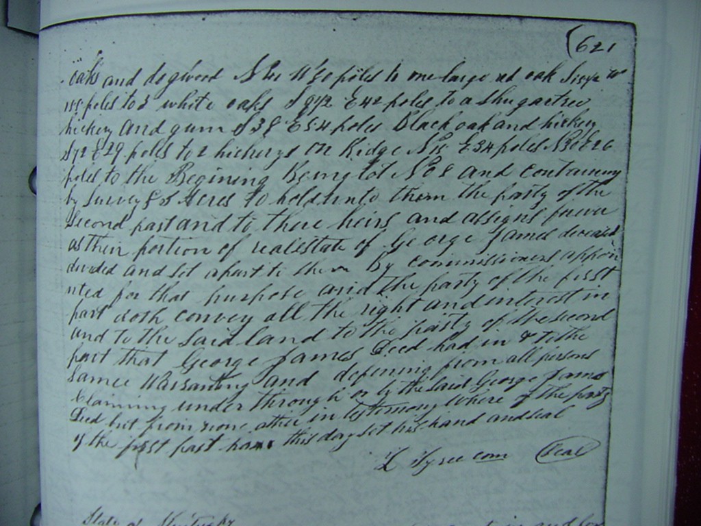 as follows (to wit) Beginning at hickory and chestnut on N side(?) of Sinking in line of John H, James surveyor