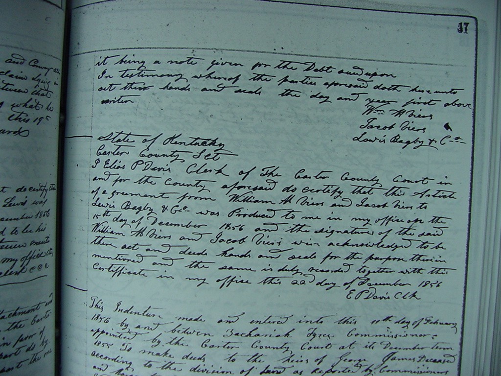 I Elias P. Davis, Clerk of the Carter County Court, do certify that this deed from