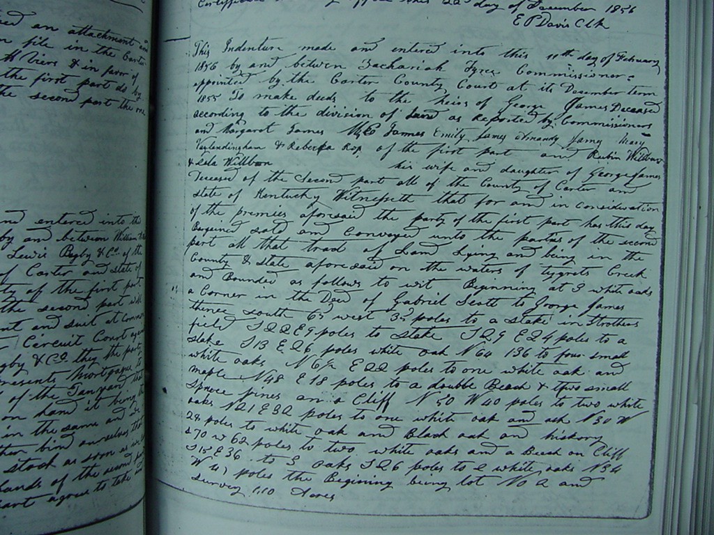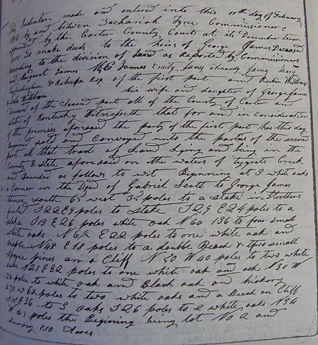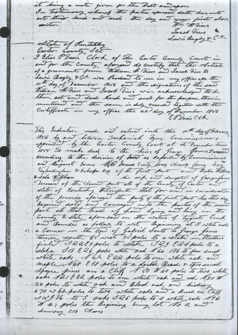 the 13th day of February 1856 and the said Zachariah Tyree as Commissioner acknowledged