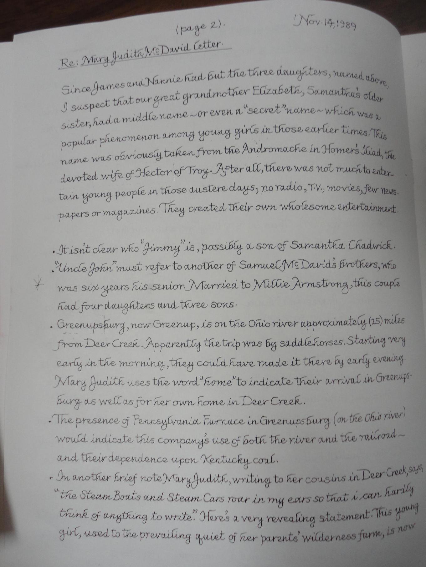Mary Judith McDavid Letter and Essay