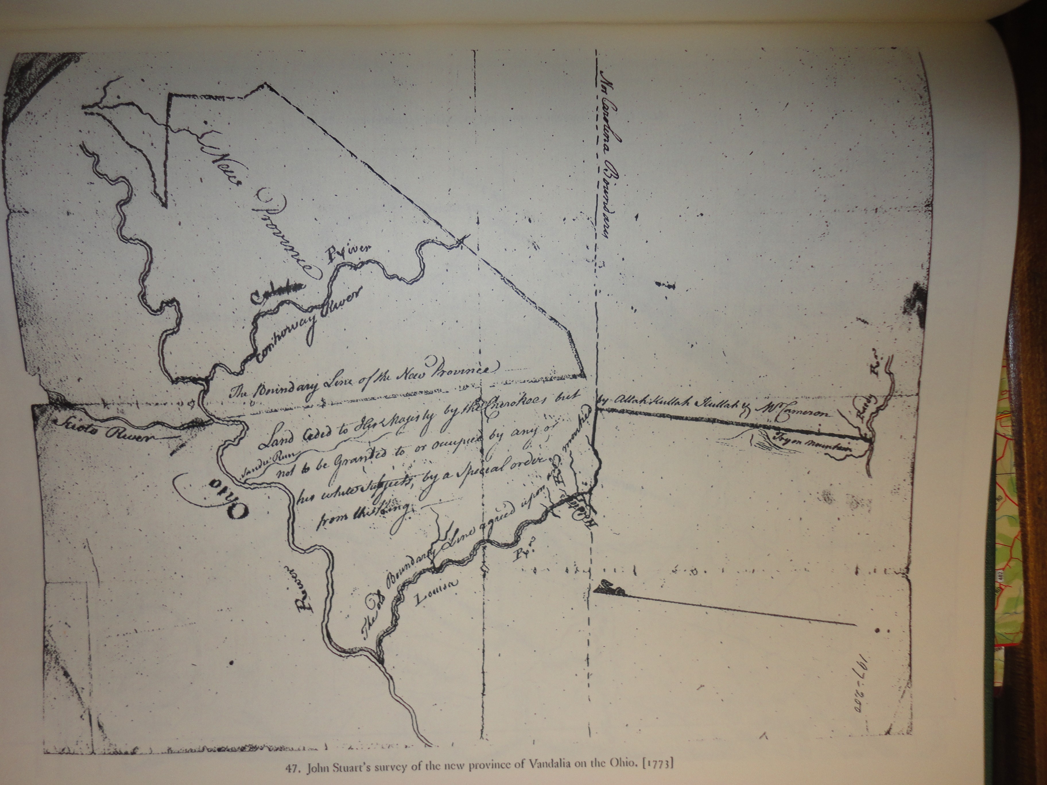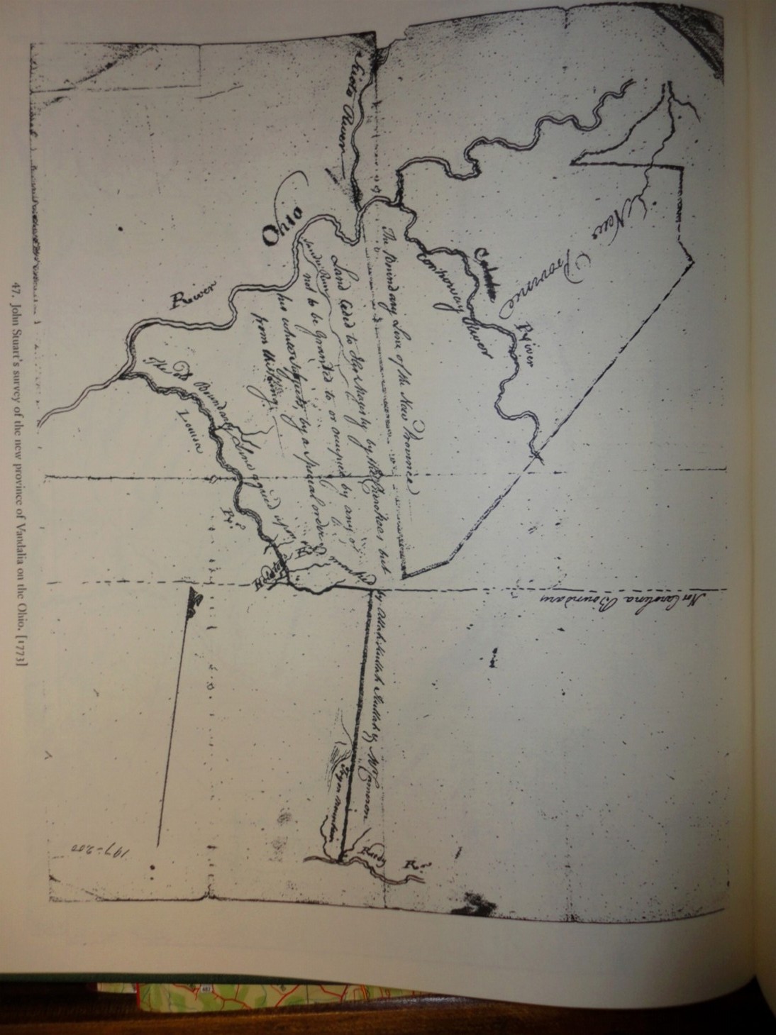 The caption "John Stuart's survey of the new Province of Vandalia on the Ohio is inexplicable. I can find no historic reference to it.