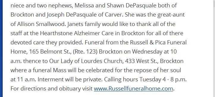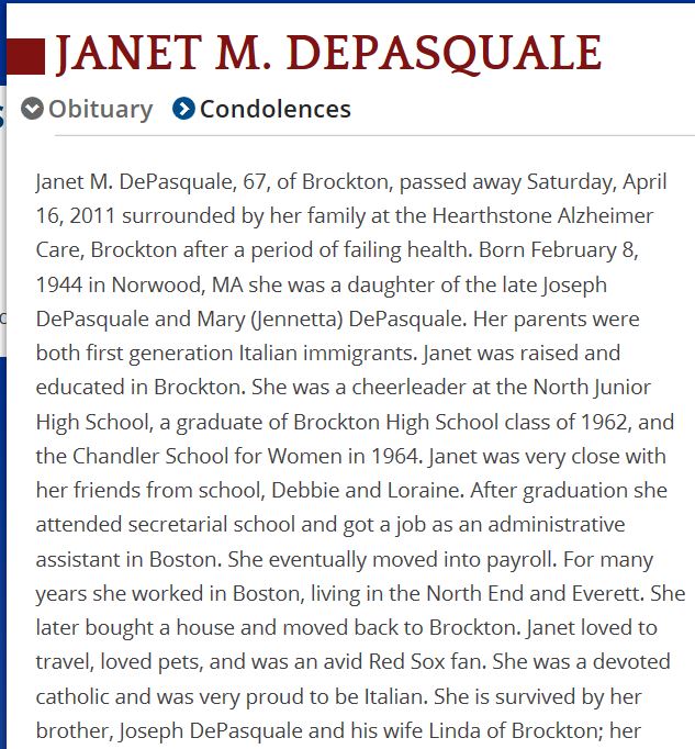 Rest in peace dear Janet Submitted by her cousin: John W. Grace