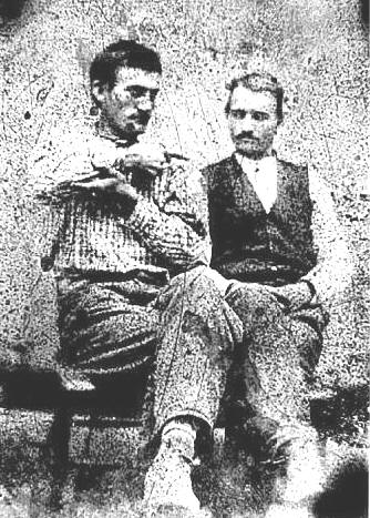 *Unknown Bowmer (left) & Benjamin F. Sharp (right) 1857-1921 Contributed By: Jeff Sharpe Benjamin Sharp married Nancy Ann McDonald on August 11, 1880 in Casey Co. They had the following children; Oscar L. Sharp b. 1883, Jefferson Sharp b. 1885, James Fonzo Sharp 1887-1973, Mary Bell Sharp b. 1890, George Waghington {Washey} Sharp b. 1895, Dewy Sharp b 1901, all born in Casey Co. *Another researcher thinks this may be John Alfred Cauell Bowmer who married Benjamin's sister Elizabeth Ann. If anyone knows for sure, please let me know! |