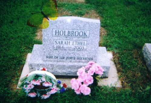 | Holbrook | Sarah Ethel Sheckels | 1914 | 2003 | w/o Lee Ports Holbrook | 1 |