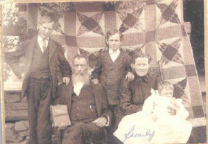 The older gentleman with the beard is Jeremiah Denton Stailey/Staley, b. 6 July 1848 in Clinton County, KY. The lady is his wife, Nancy Irene Smithers Stailey, b. 7 Sep 1845 (or 1815). The young man on the left of the family picture is William McKinley Stailey/Staley, who was killed 29 September 1918 during WWI in the Argonne Forrest in France. |