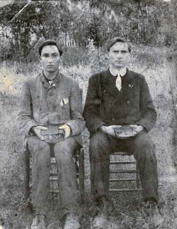 The name on the back of this photo is Oren Hutson, but I don't know which of the two men is actually Oren. Both men appear to be holding bibles or other books so may have been ministers or teachers. The photo was probably taken during the 1920's or 1930's. If anyone can help identify these two men, please contact Rhonda or Sherri. |