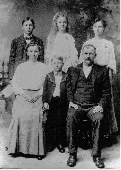 Photo of William Floyd Wray family. He was the 4th child and son of William Charles Wray and Dora Ann Wright. The photo was taken around 1905-1907, most likely in Hoopeston, Illinois. Those in the photo are (clockwise from top left): |