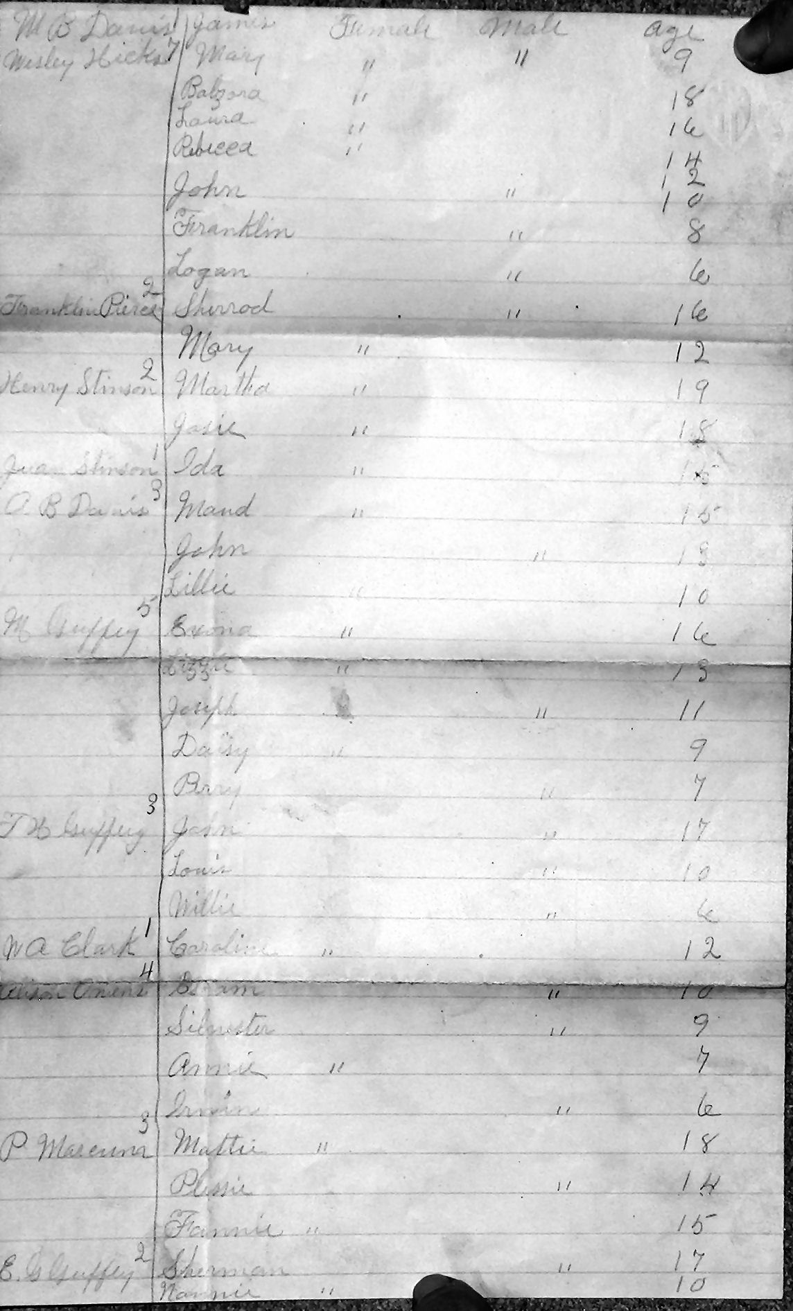 P. Marcum Mattie Marcum 18   1