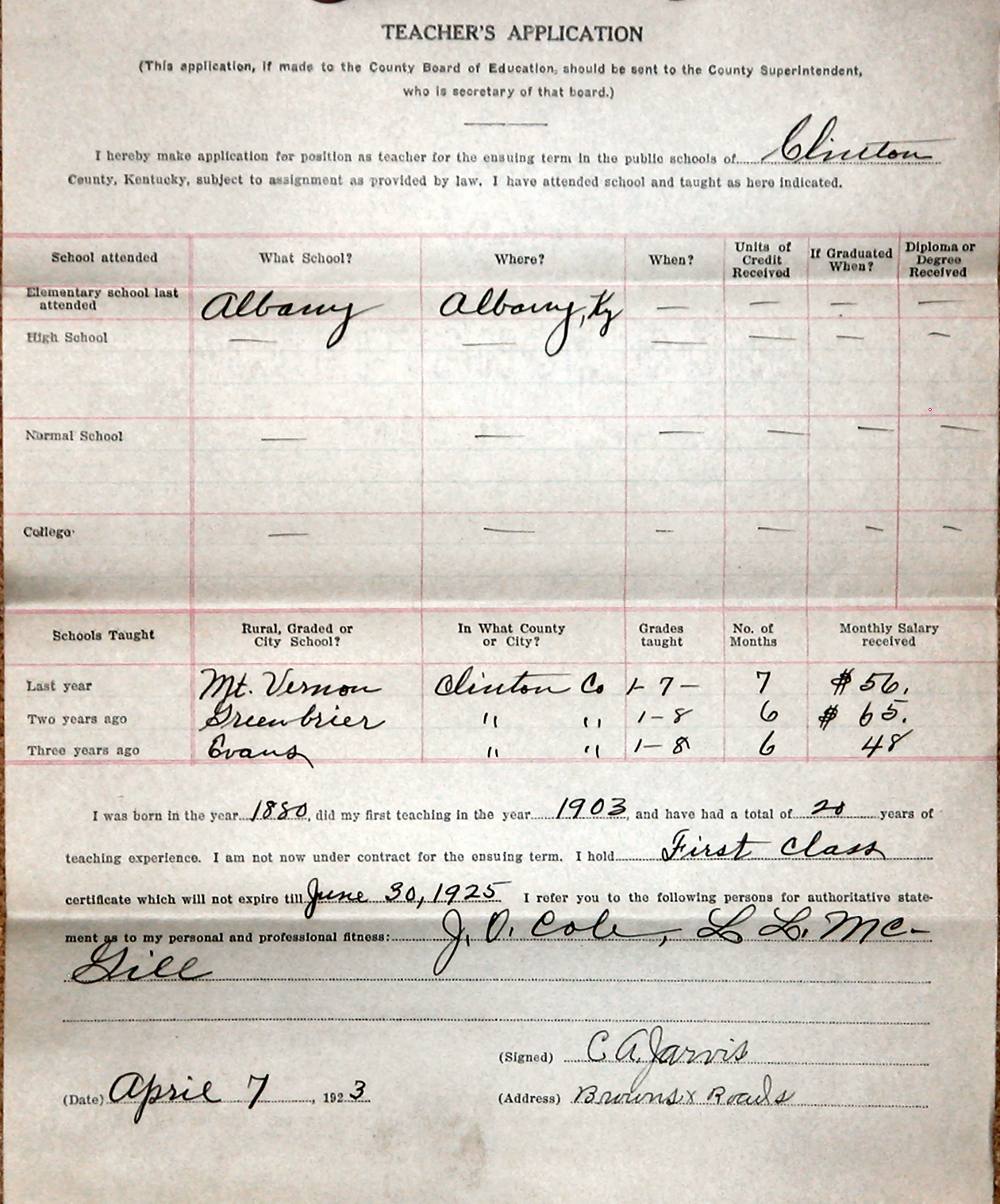 I ran up on a fewteacher's applications when we were researching Clinton