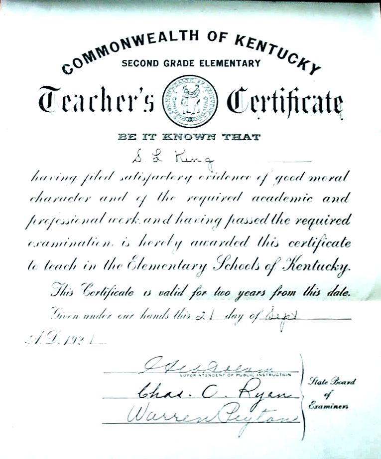 Spencer L. King Teaching Certificate Mom and