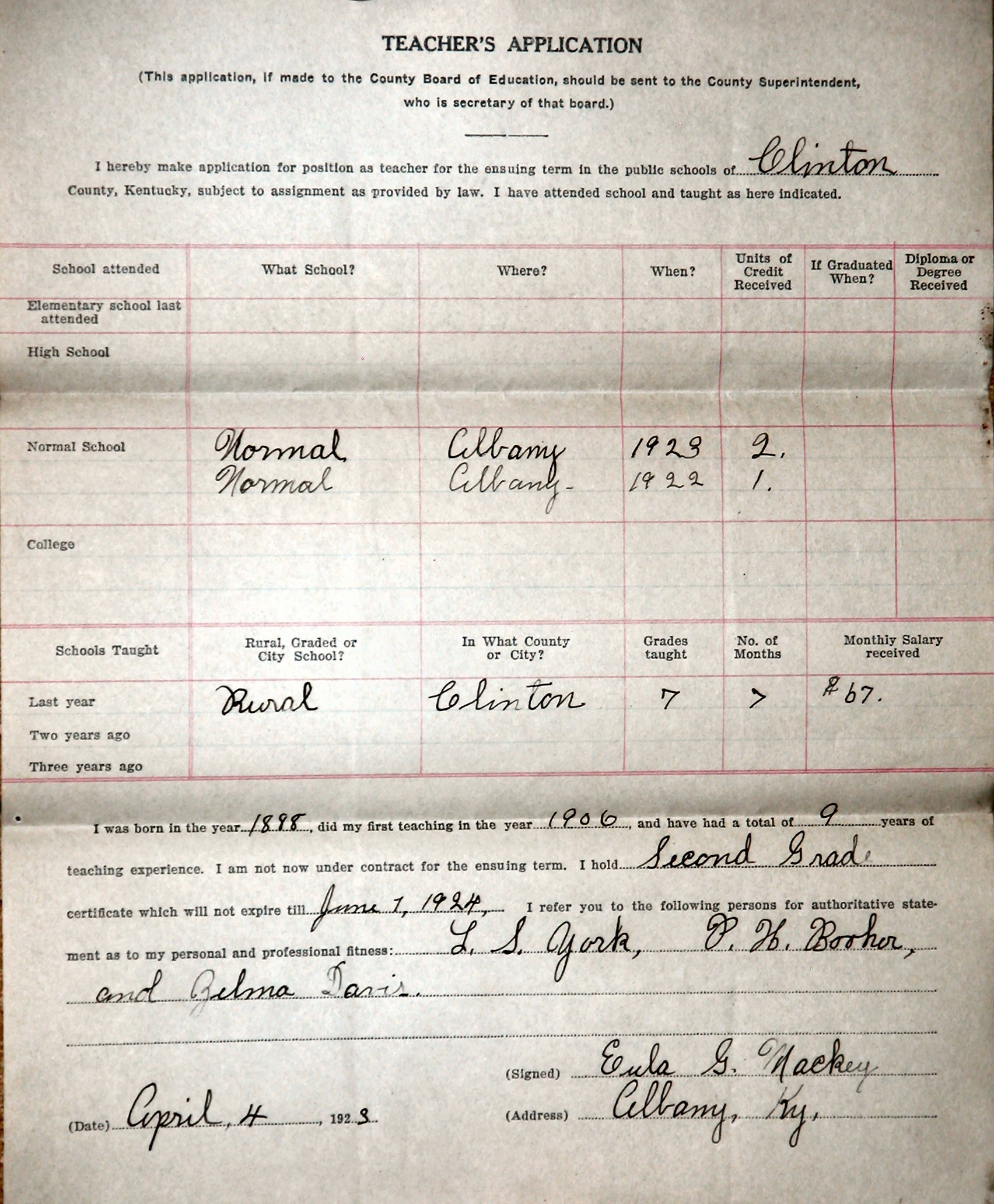 I ran up on a fewteacher's applications when we were researching Clinton