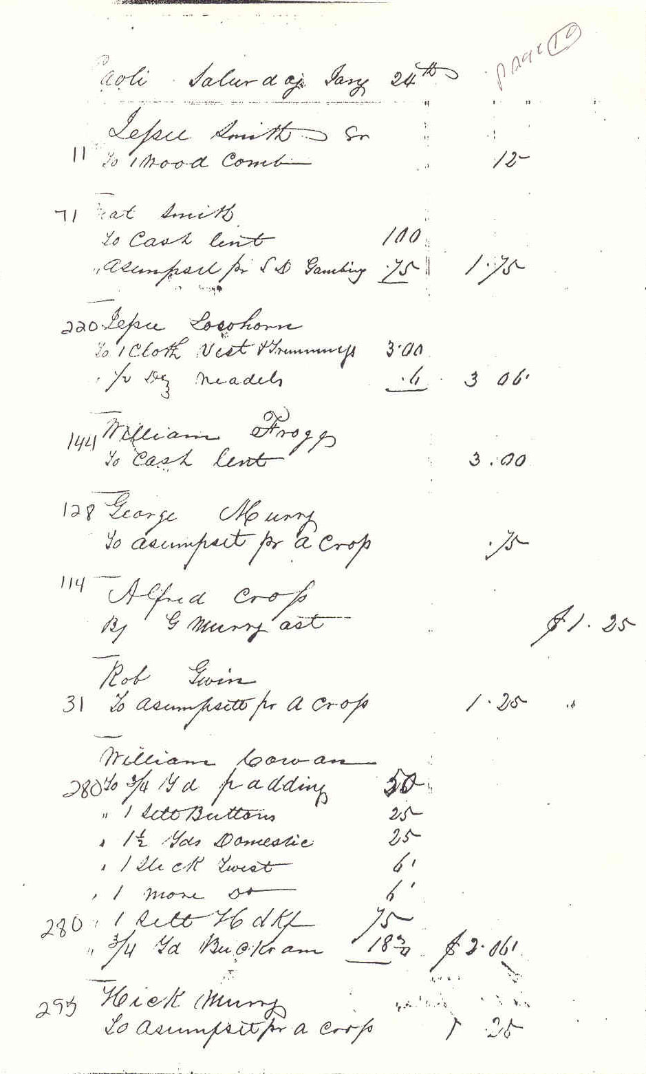Jesse Lowhorn To 1 yd. ribbon .05 " 1 cotton H(??) .18 |
