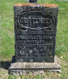![]() Garbrilley Crisp wife of J. F. Crittenden Dec. 8, 1882 - Sept. 12, 1909 |