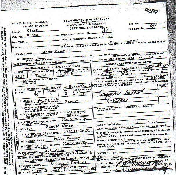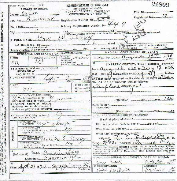 James s/o Gipson & Virginia (Waters) Abney |