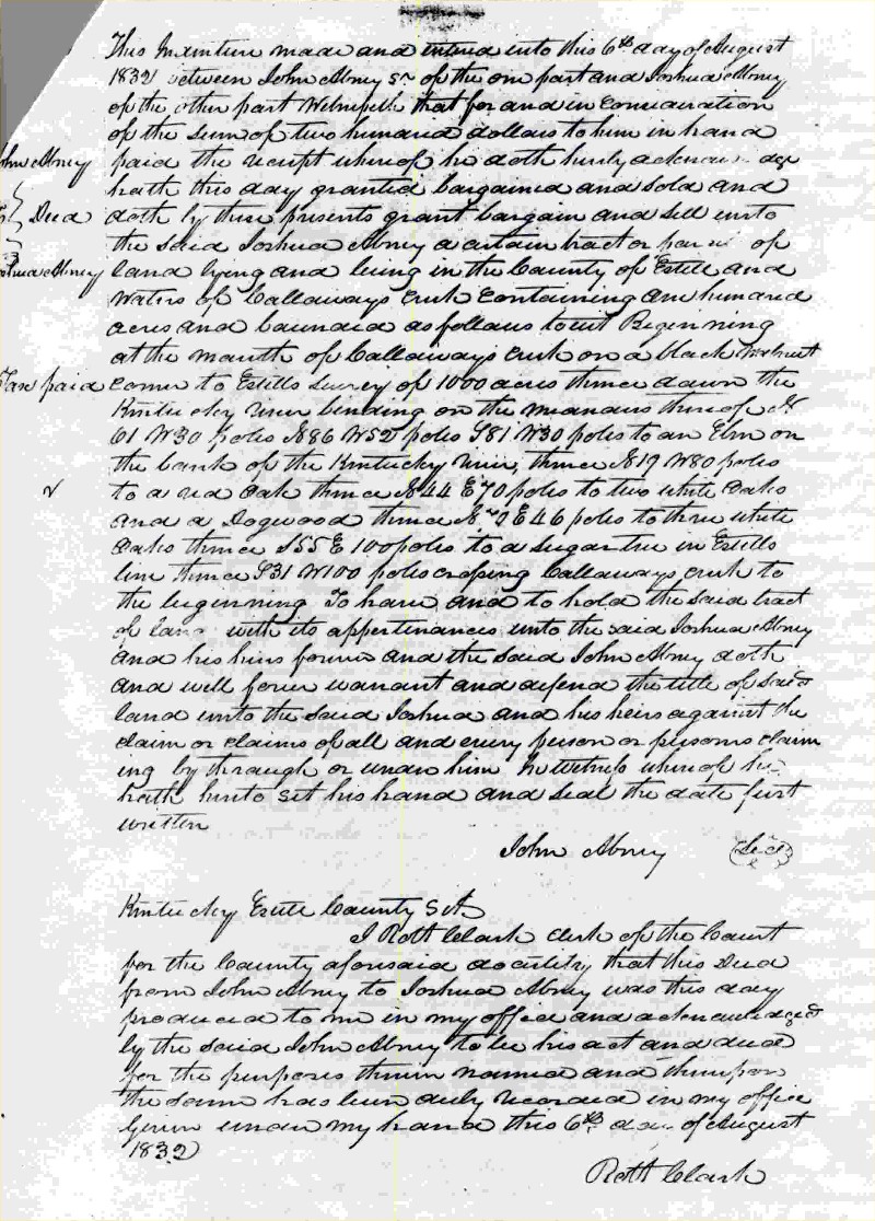 | Joshua Abney Deed Page 1 | Joshua Abney Deed Page 2 | ||