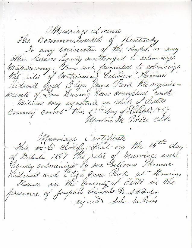 | Kidwell, Thomas & Eliza Jane Park | Grace Prater |
