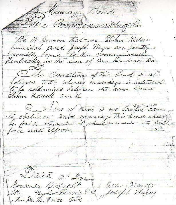 | Kidwell, Thomas & Eliza Jane Park (Marriage Bond) | Grace Prater |