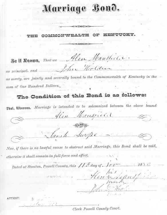 Mansfield, Henry & Mary E. Powell (Marriage Bond) |