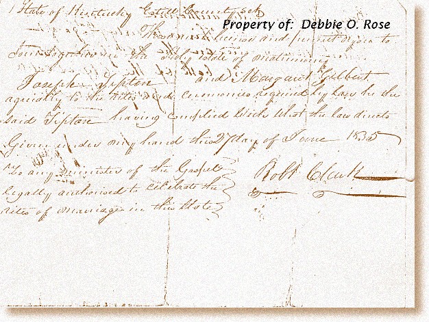 | Tipton, Joseph & Margaret Gilbert (June 1835) | Debbie Osborne Rose |