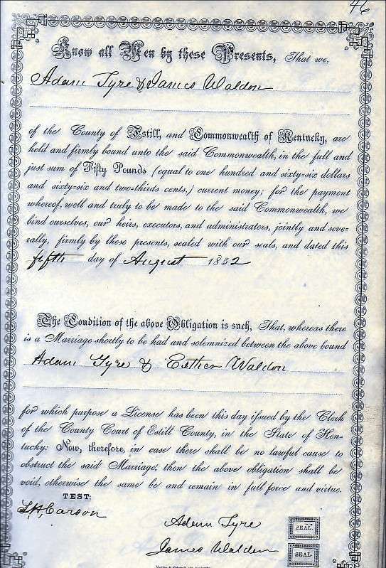 | Tyre, Adam & Esther Waldon (Marriage Bond) | Grace Prater |