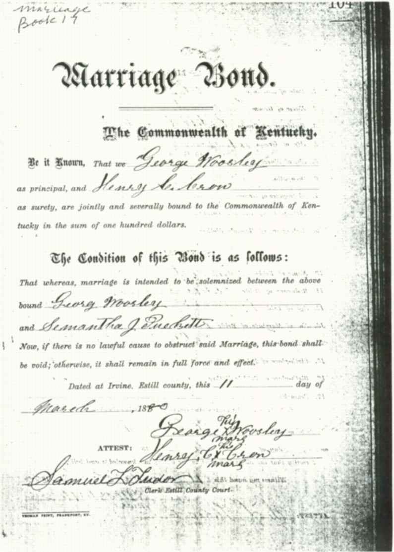 | Woosley, George & Samantha J. Puckett (Marriage Bond) | Faye D'Amore |