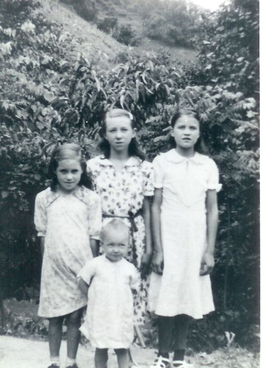 Front is Marie Hall Little. Lt to Rt is Maymie (Ruthie) Hall, Mildred (Shorty) Hall,